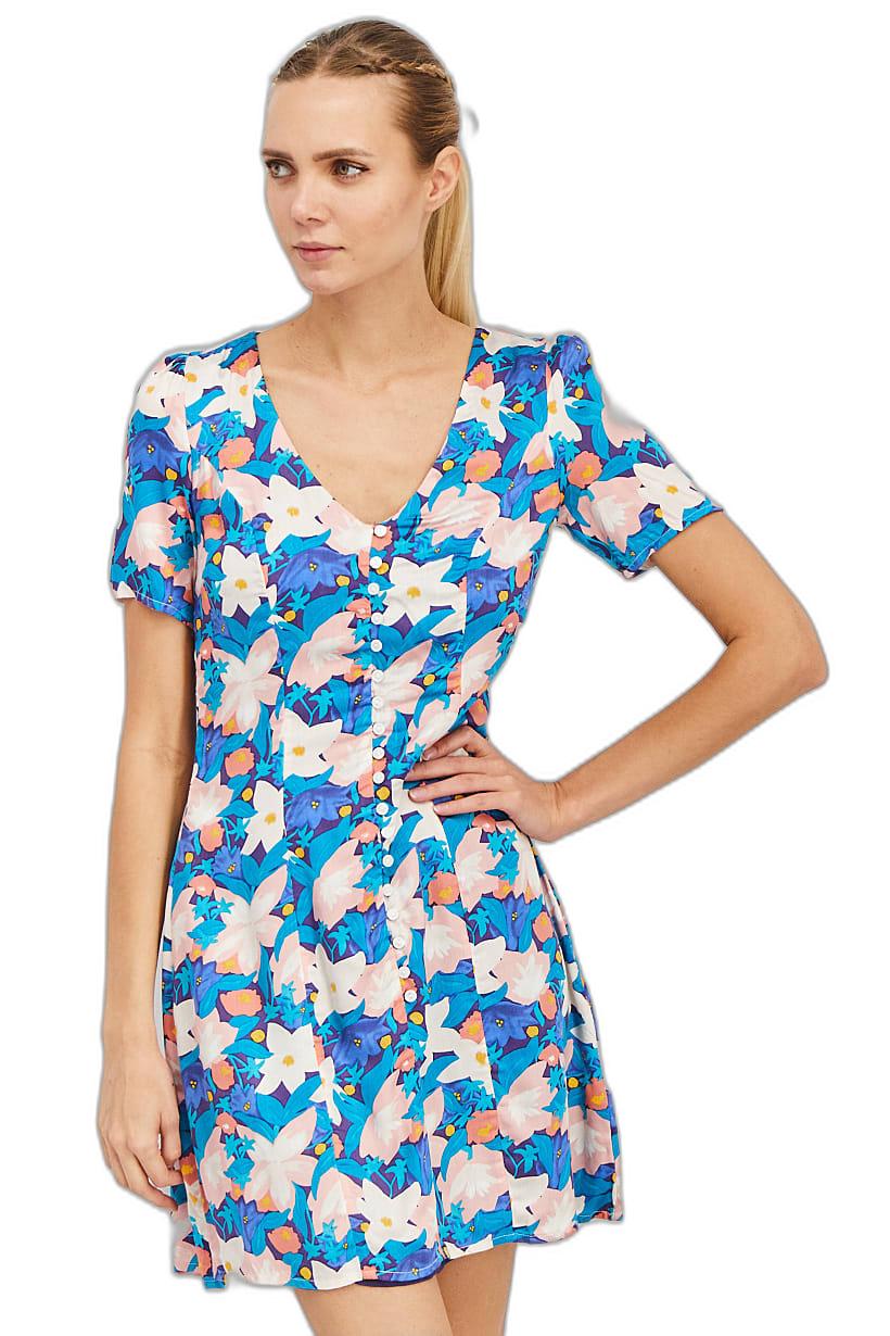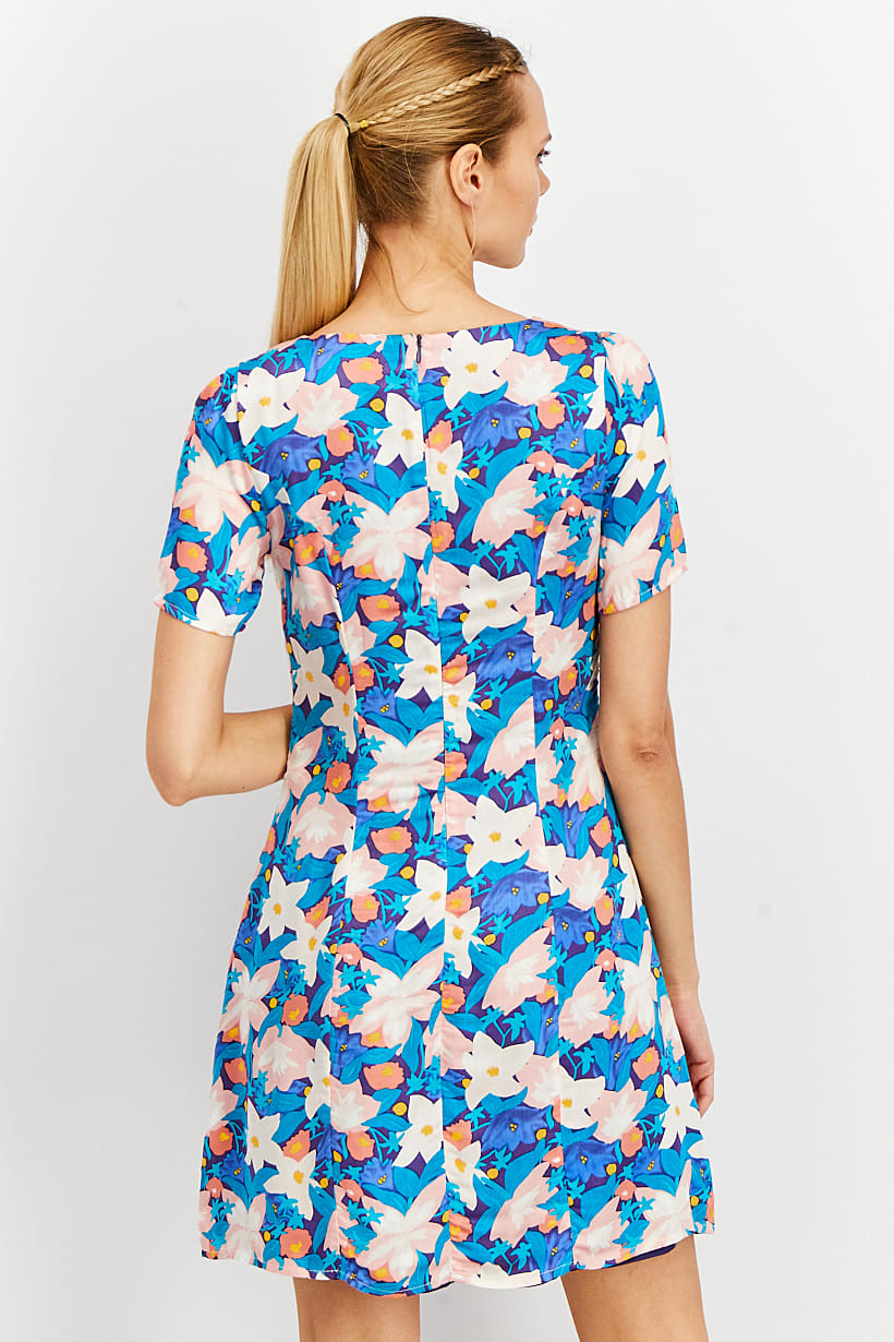 | descriptionOriginal | Care : Machine washable, Dress Style : Mini, Fit : Regular fit, Size shown : FR, Types of Hem : Straight hem, Types of Neckline & Collar : V-neckline, Types of Sleeve : Short sleeve, Disclaimer : Product color may slightly vary due to photographic lighting sources or your monitor settings., Fabrics : 100% Modal, Occasion : Casual, Pattern & Print : Floral Print, Types of Closures : Zipper closure, Color Family : Purple, |