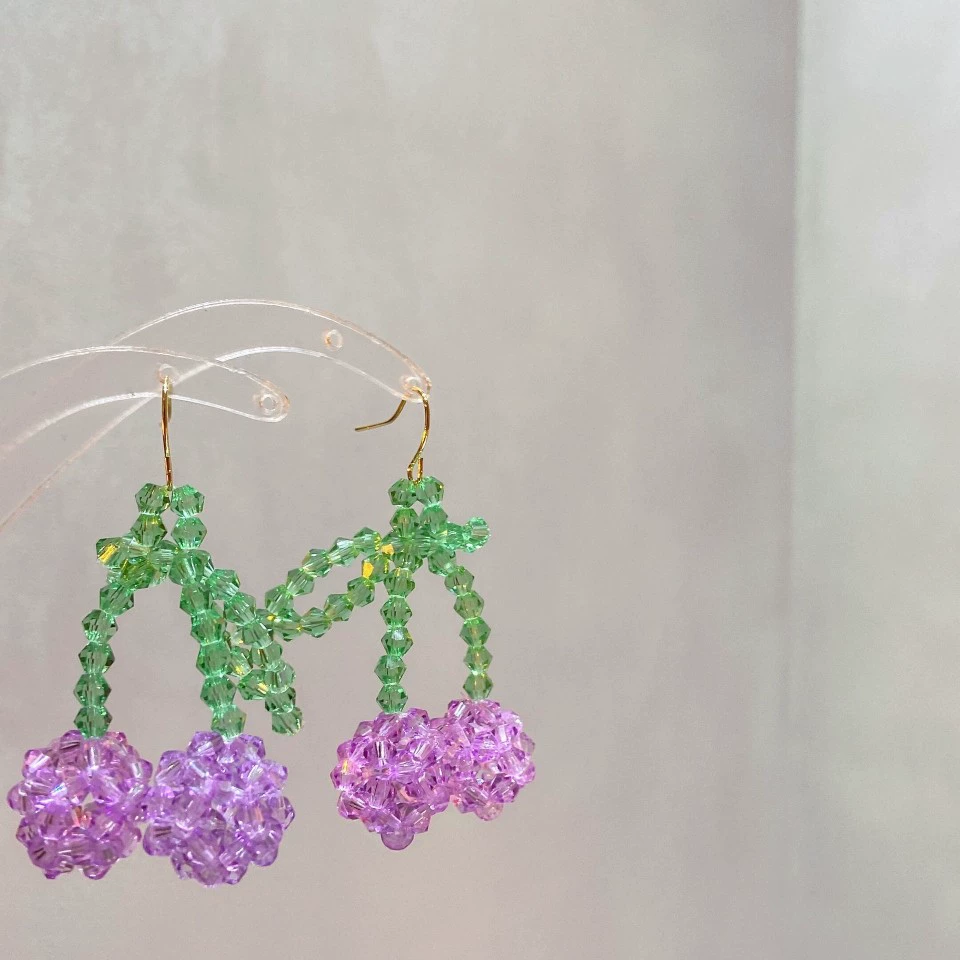 | nameOriginal | Purple Cherry Crystal Beaded Earrings Sweet and Cute Girly Style Fruit Earrings Niche Personalized Small Fresh Earrings |