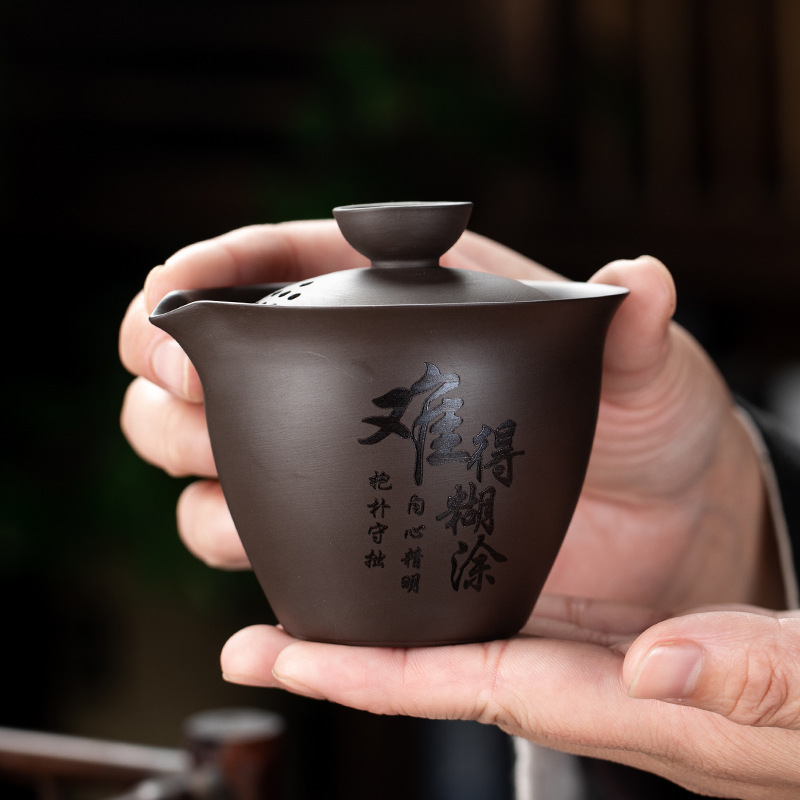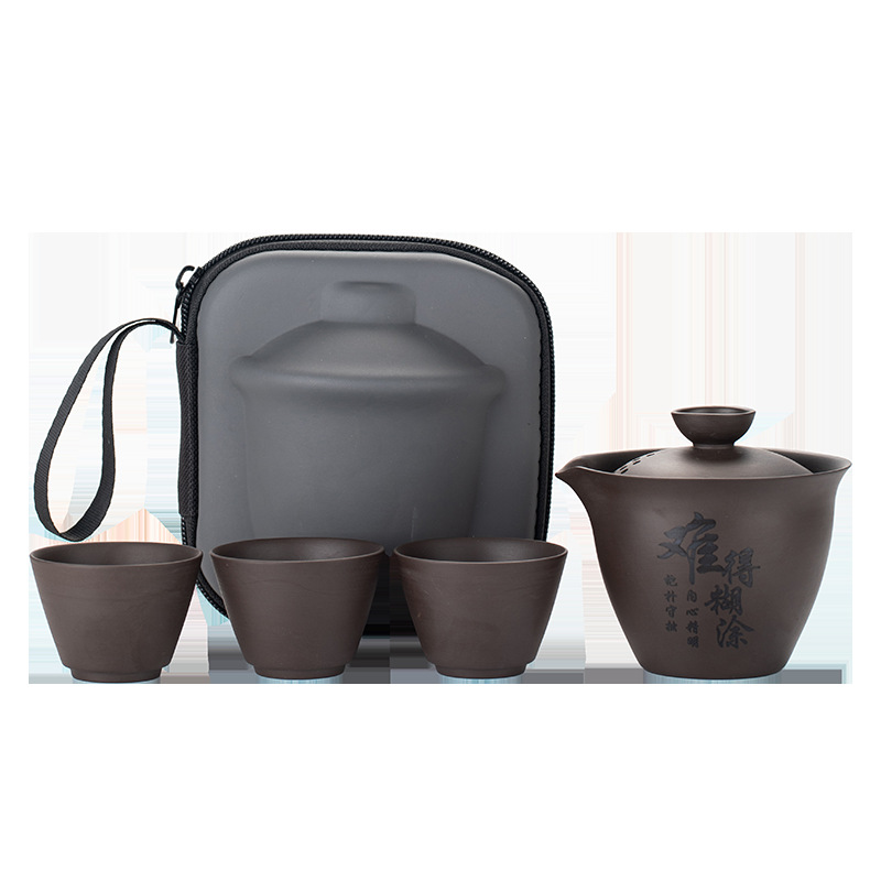 | nameOriginal | Purple Clay Teapot Business Travel Tea Set Express Cup Lettering Portable Storage Bag Outdoor Bubble Car One Pot Three Cups |