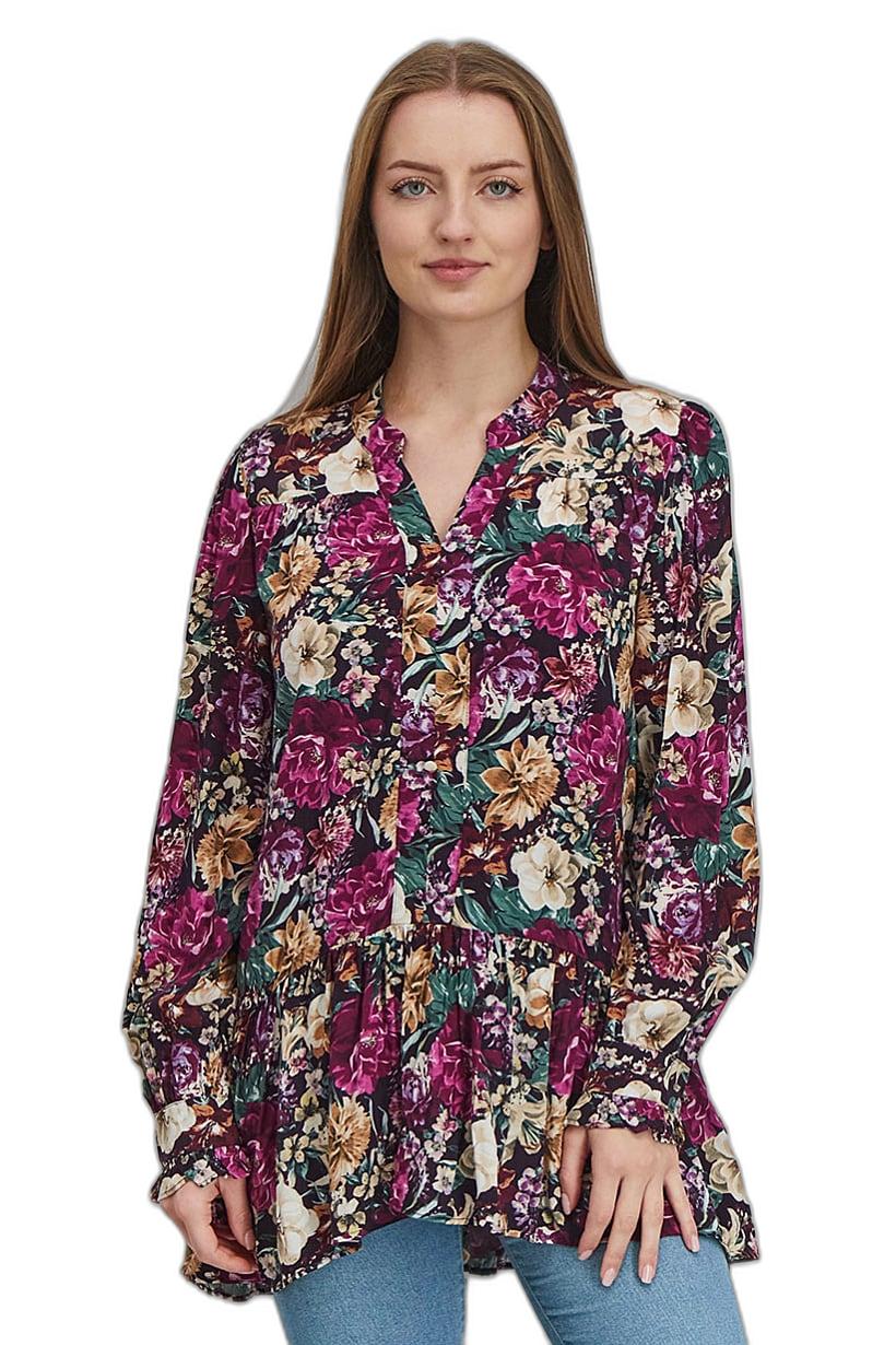 This blouse is perfect for women who prefer a regular fit. It is made of 100% cotton and features a beautiful floral print in shades of purple. The V-neckline and long sleeves add a touch of elegance to the blouse, while the straight hem and button closure make it ideal for casual occasions. It is machine washable for easy care and is available in EU size.