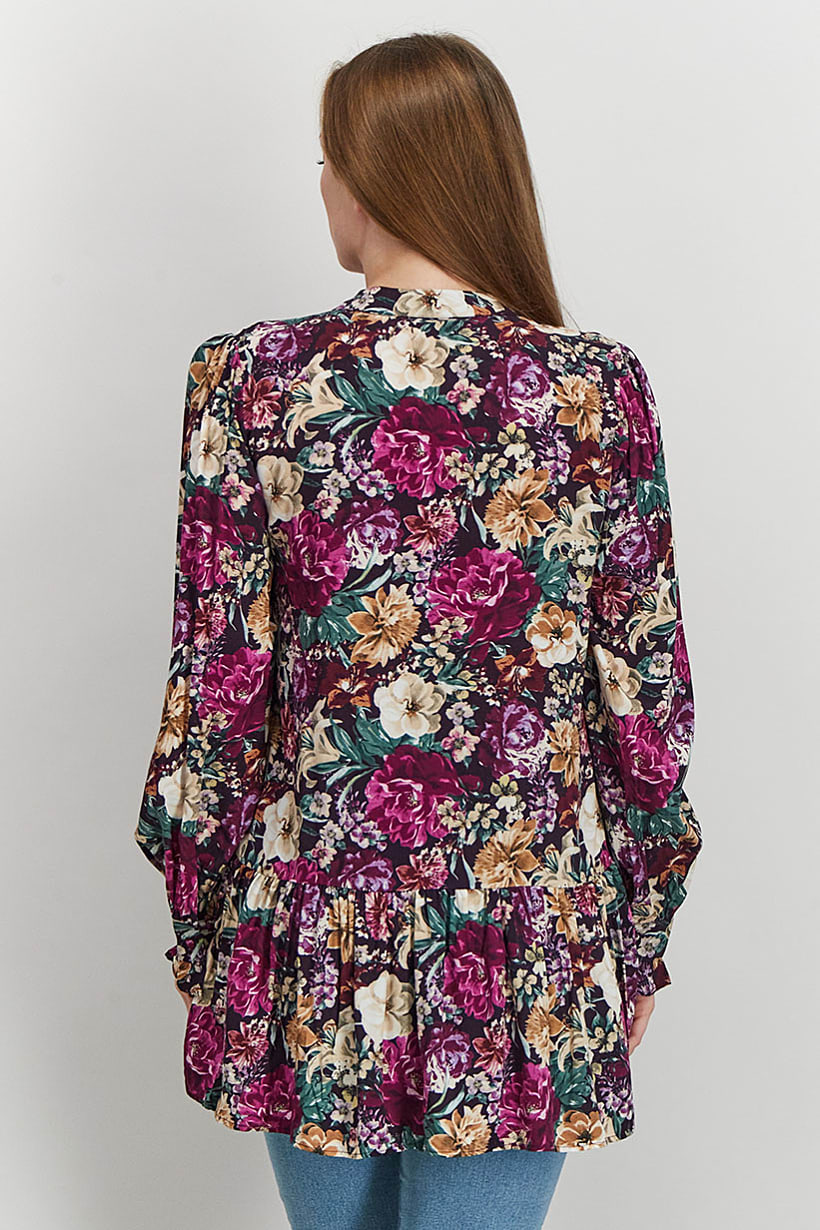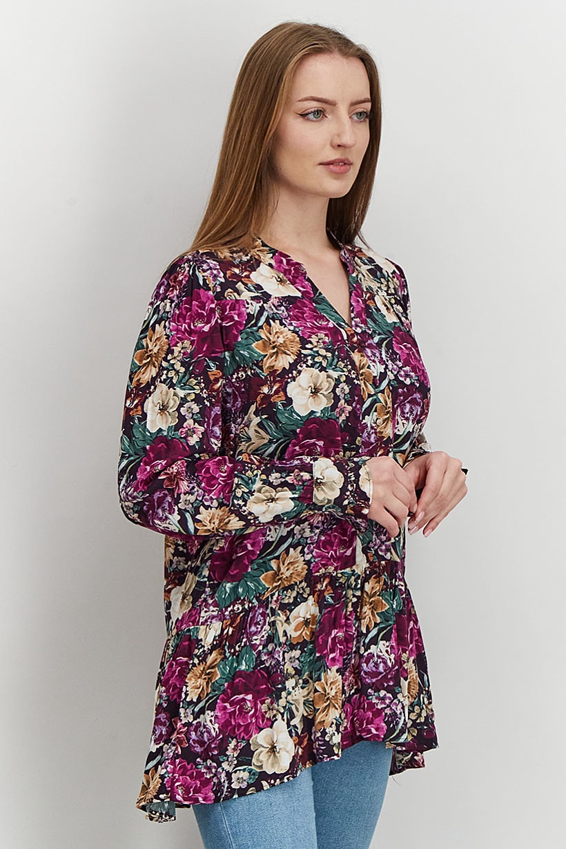| nameOriginal | Women V-neck Long Sleeve Floral Print Top, Purple Combo |