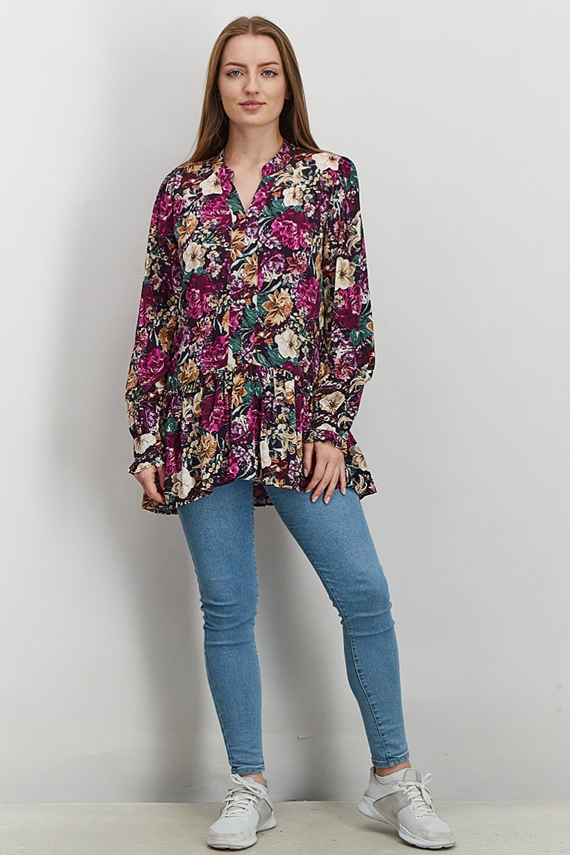 | descriptionOriginal | Care : Machine washable, Fit : Regular fit, Ideal For : Women, Size shown : EU, Top Style : Blouse, Types of Hem : Straight hem, Types of Neckline & Collar : V-neckline, Types of Sleeve : Longsleeve, Fabrics : 100% Cotton, Occasion : Casual, Pattern & Print : Floral Print, Types of Closures : Button, Color Family : Purple, |