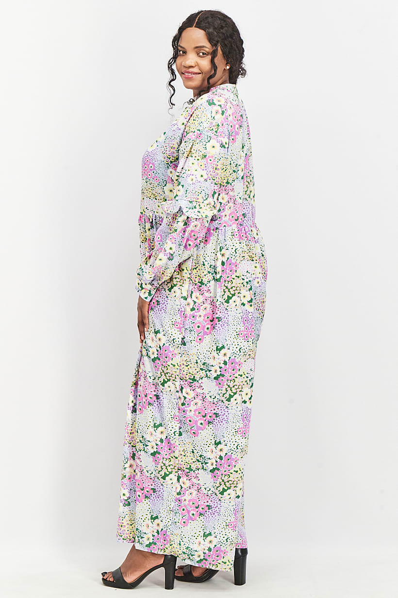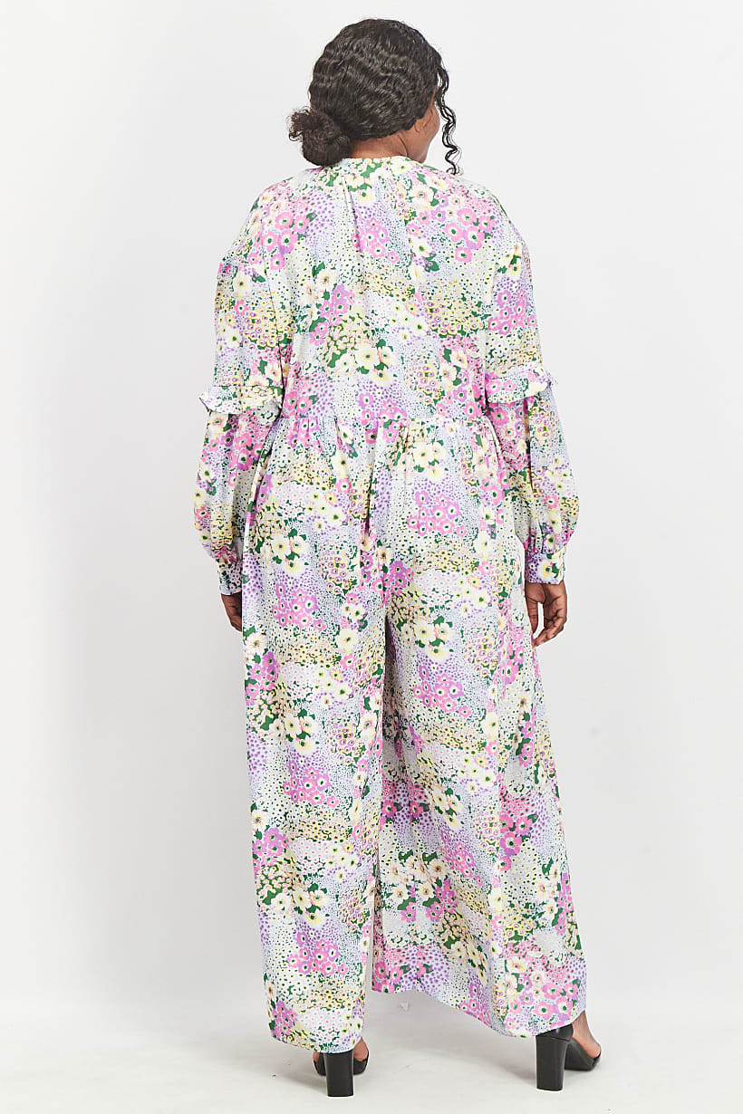 Care : Machine washable, Fit : Regular fit, Ideal For : Women, Jumpsuit Type : Jumpsuits, Size shown : UK, Types of Neckline & Collar : Band collar, Types of Sleeve : Cuffed sleeve, Disclaimer : Product color may slightly vary due to photographic lighting sources or your monitor settings., Fabrics : 100% Polyester, Occasion : Casual, Pattern & Print : Floral Print, Types of Closures : Buckle closure, Color Family : Purple,