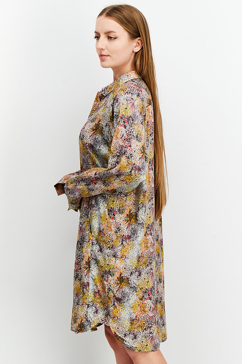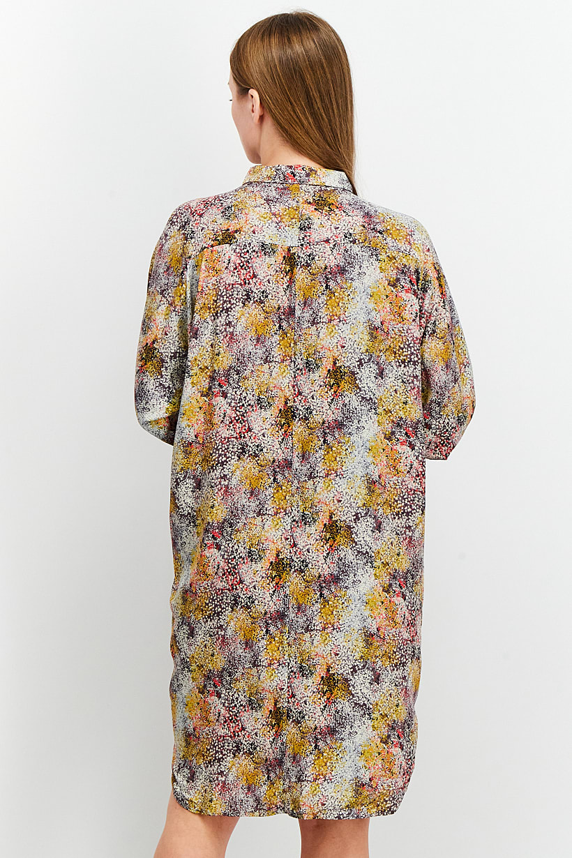 | descriptionOriginal | Care : Machine washable, Dress Style : Shirt Dress, Fit : Regular fit, Size shown : US, Types of Hem : Slit hem, Types of Neckline & Collar : Spread collar , Types of Sleeve : Longsleeve, Fabrics : 69% Lyocell, 31% Viscose, Occasion : Casual, Pattern & Print : Allover print, Types of Closures : Button, Color Family : Purple, |