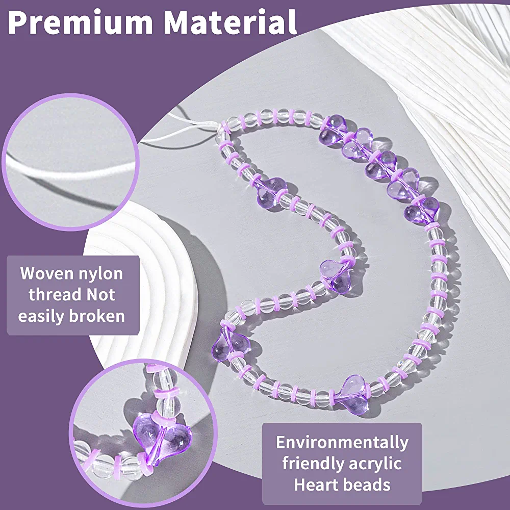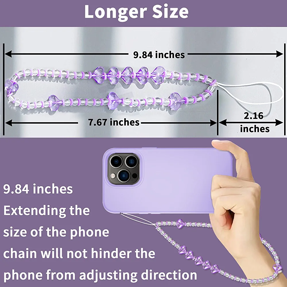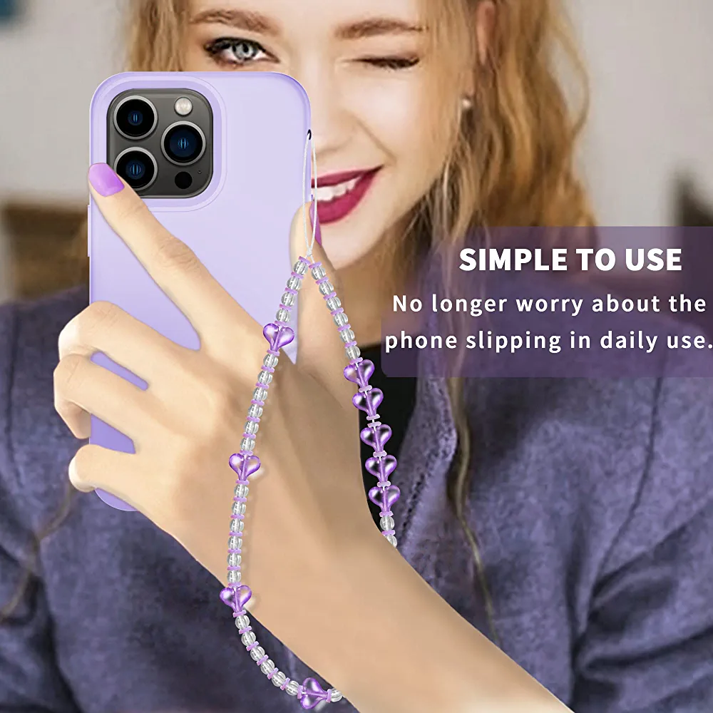 TACOMEGE Cute Crystal Beads Cell Phone Lanyard Wrist Strap for Women Girls, Heart Phone Charm String for Smartphone Case, Airpod Case (Purple)