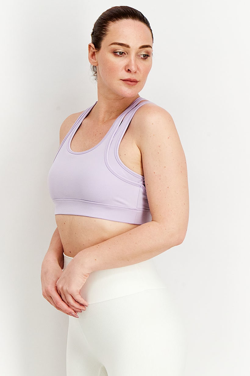 Women Solid Non Padded Double Layered Training Sports Bra, Purple