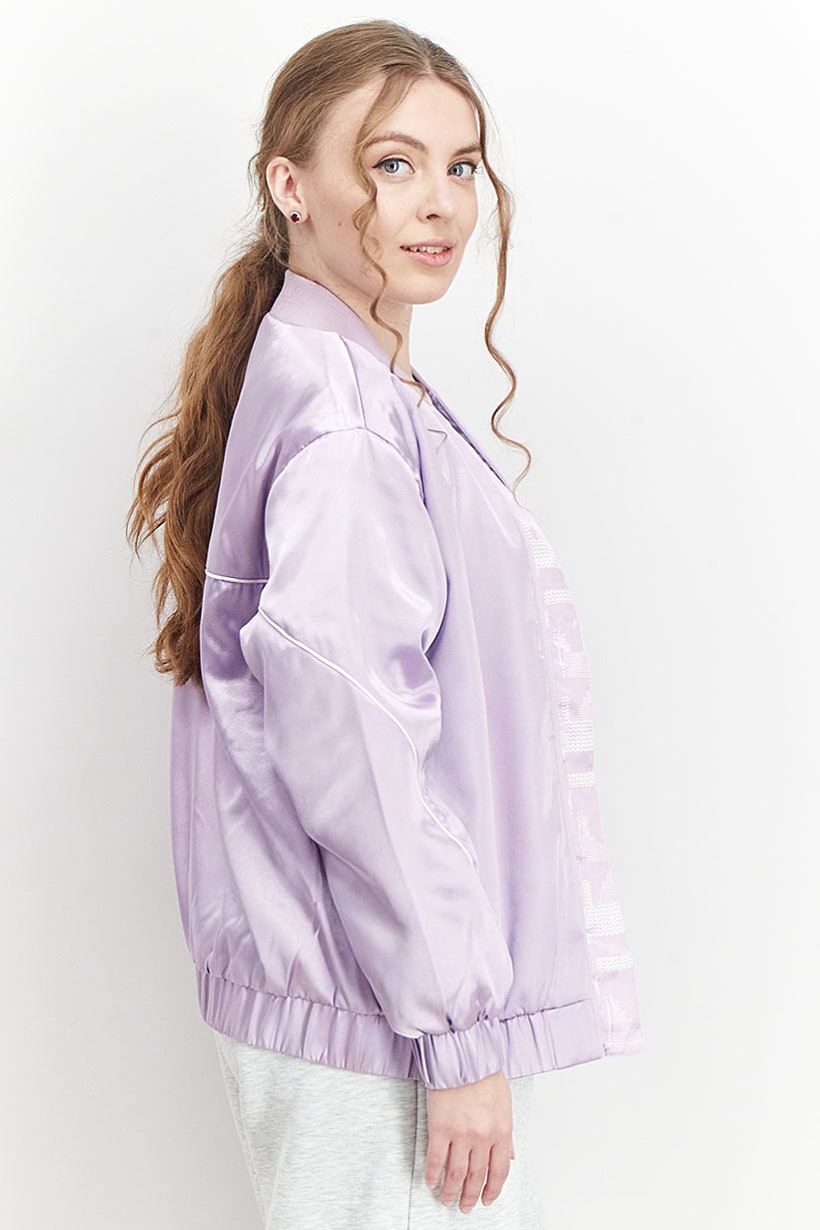 | nameOriginal | Women Sportswear Fit Brand Logo Bomber Jacket, Purple |