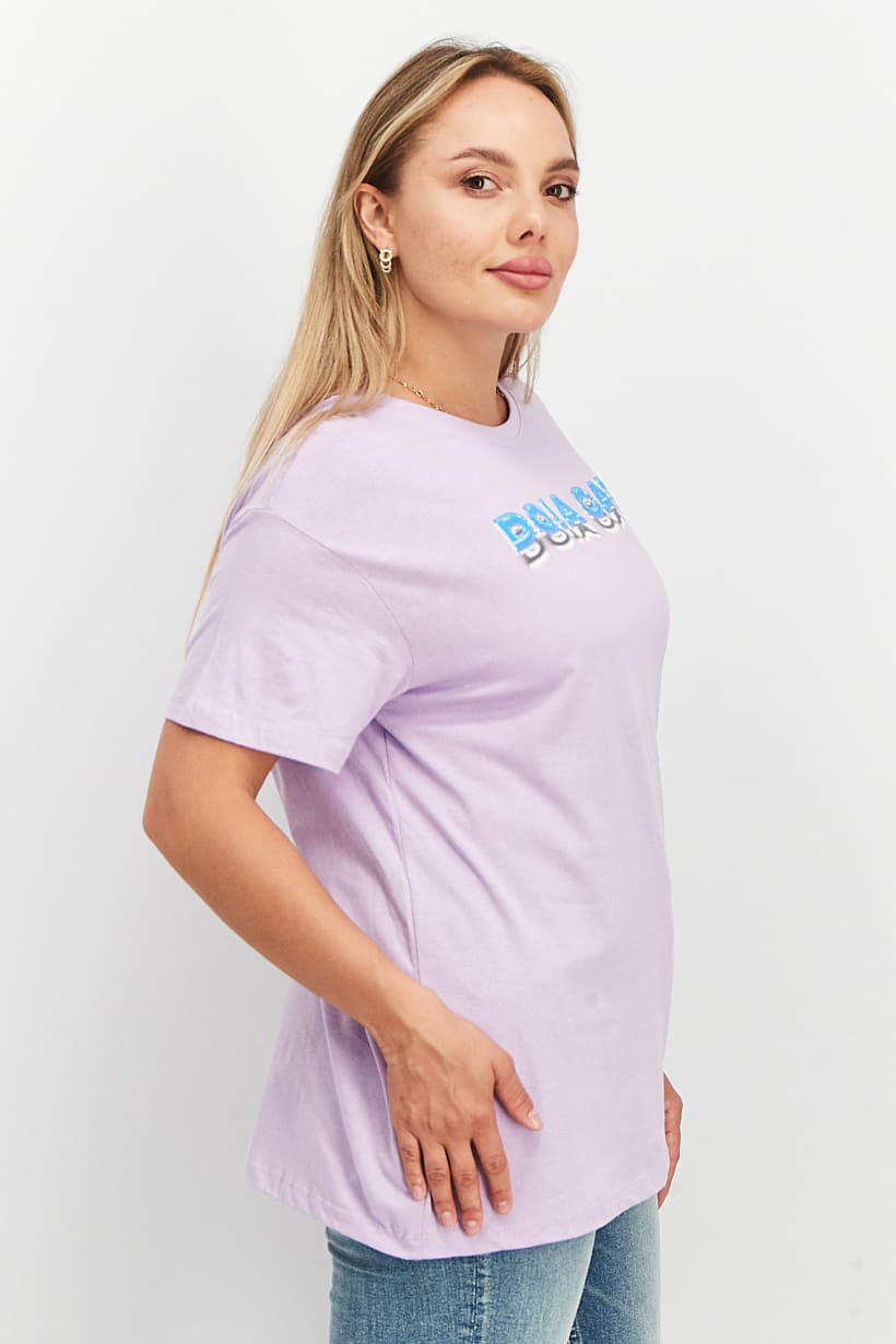 Care : Machine washable, Fit : Regular fit, Ideal For : Women, Size shown : International, Top Style : T-Shirt, Types of Hem : Straight hem, Types of Neckline & Collar : Crew neckline, Types of Sleeve : Short sleeve, Disclaimer : Product color may slightly vary due to photographic lighting sources or your monitor settings., Fabrics : 100% Cotton, Occasion : Casual, Pattern & Print : Graphic print, Types of Closures : Pullover, Color Family : Purple,