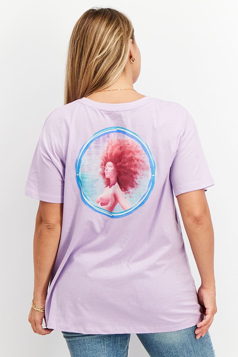 Purple Graphic Print T-Shirt with Short Sleeves for Women.