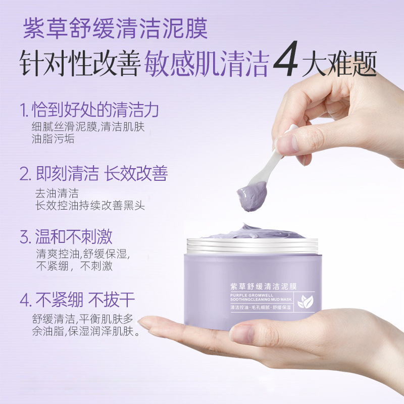 | nameOriginal | Purple grass cleaning mud film repair sensitive skin soothing cleaning oil control exfoliating skin care products beauty salon wholesale oe m |
