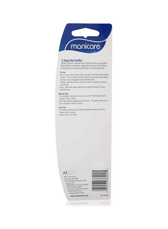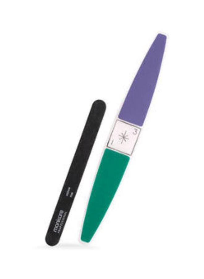 Purple/Green Emery Board Nail Buffer in 3 Steps.