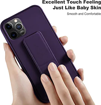 Purple iPhone 14 Pro Max Case with Magnetic Car Mount, Kickstand, Hand Strap, and Multi Stand. Made of Premium Silicone for Vertical and Horizontal Grip.