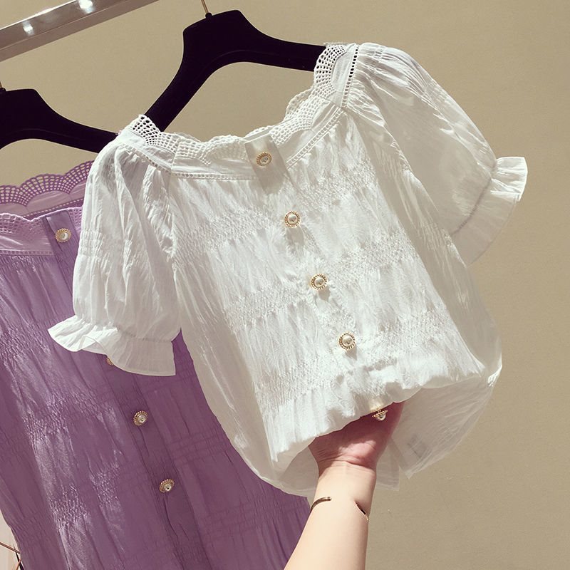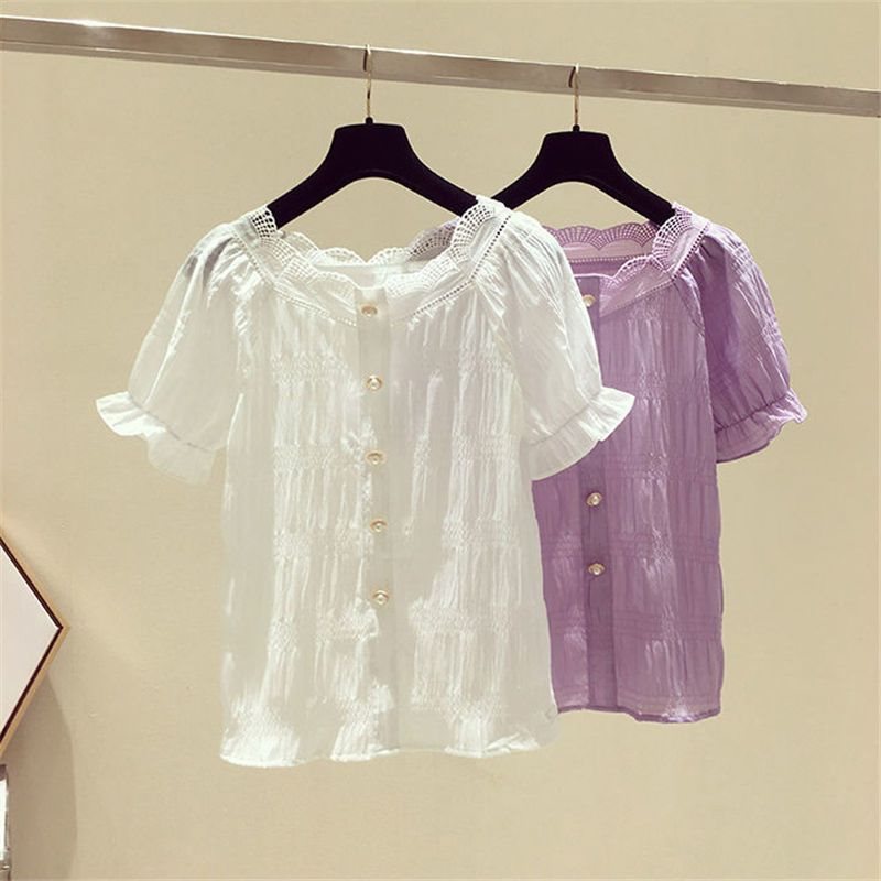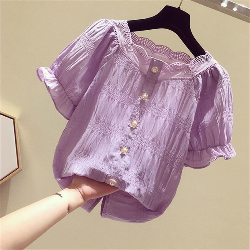 | nameOriginal | Purple Lace Chiffon Shirt Loose chubby girl plus size Women's Clothing off-shoulder Clavicle Sexy Belly Covering Women's Western Style Top |