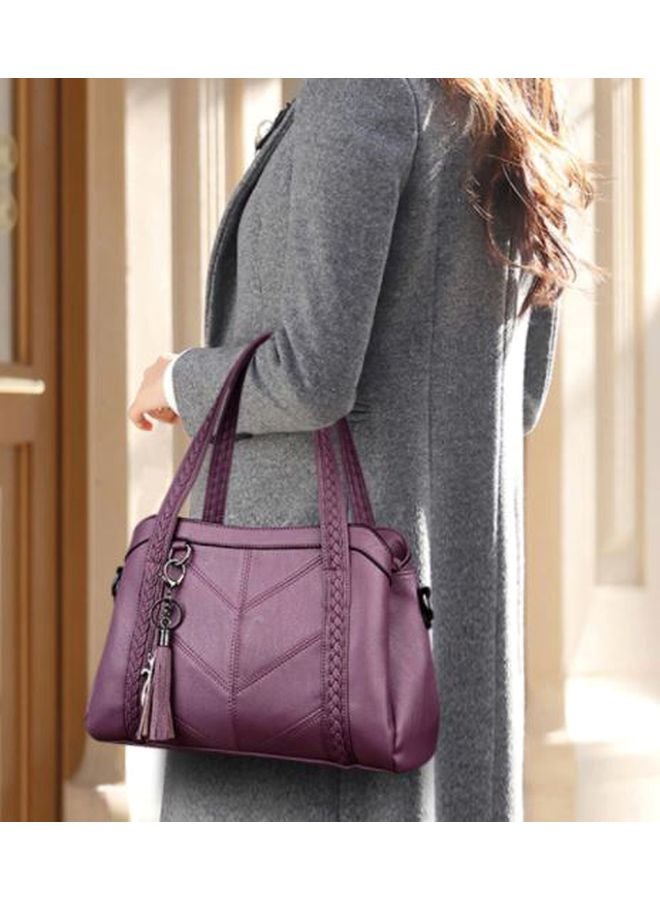 Introducing our Women Leather Handbag in a stunning shade of Purple! This handbag is the perfect accessory for any fashion-forward woman who wants to add a pop of color to her outfit. Made from high-quality leather, this handbag is both durable and stylish. The spacious interior is perfect for carrying all your essentials, while the multiple pockets keep everything organized. The adjustable strap allows you to wear it as a shoulder bag or crossbody, making it versatile for any occasion. The beautiful purple color adds a touch of elegance and sophistication to any outfit, making it the perfect accessory for a night out or a day at the office. Upgrade your wardrobe with our Women Leather Handbag in Purple today!