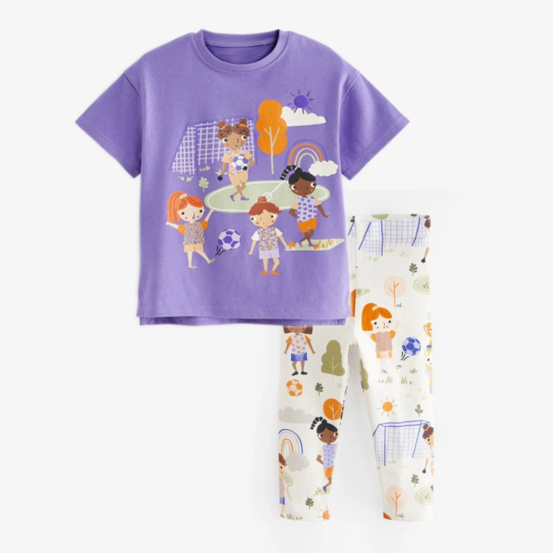 Purple leggings 2-piece set pure cotton summer short-sleeved T-shirt