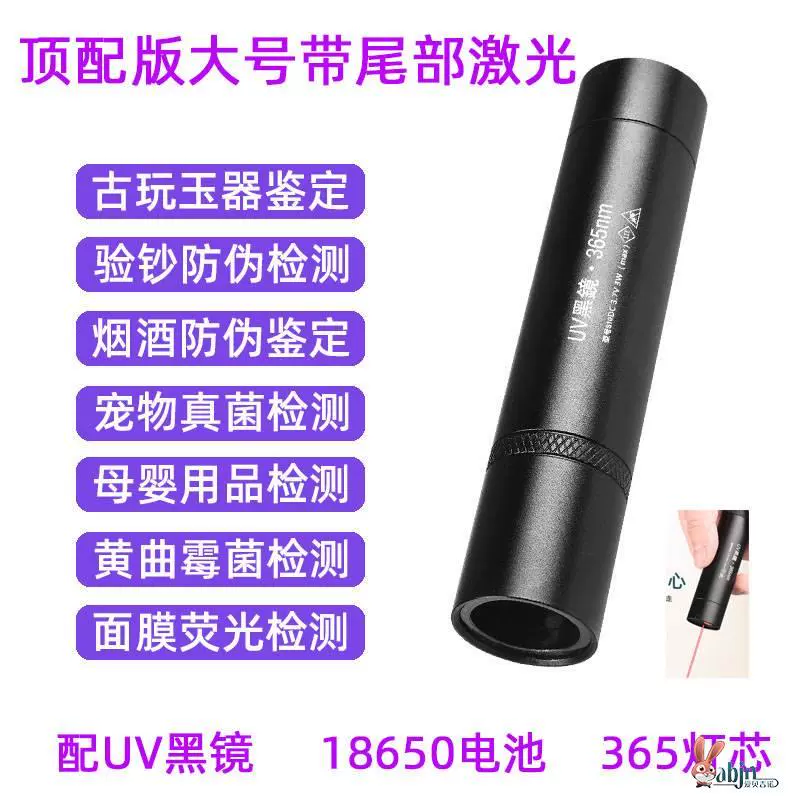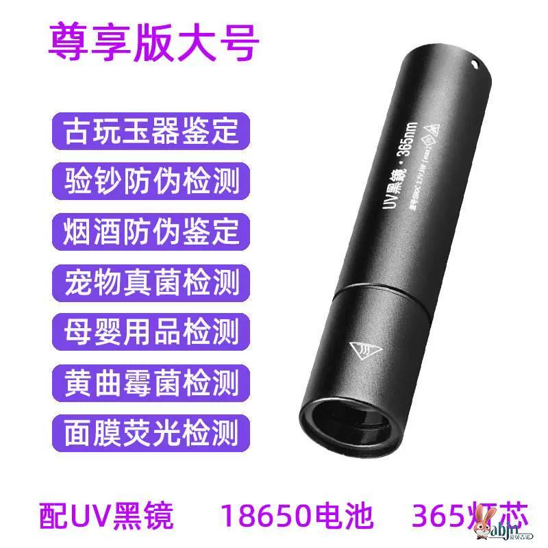 | nameOriginal | Purple light lamp for identification of tobacco and alcohol special banknote inspection 365nm identification of jade jade flashlight strong light UV pen |
