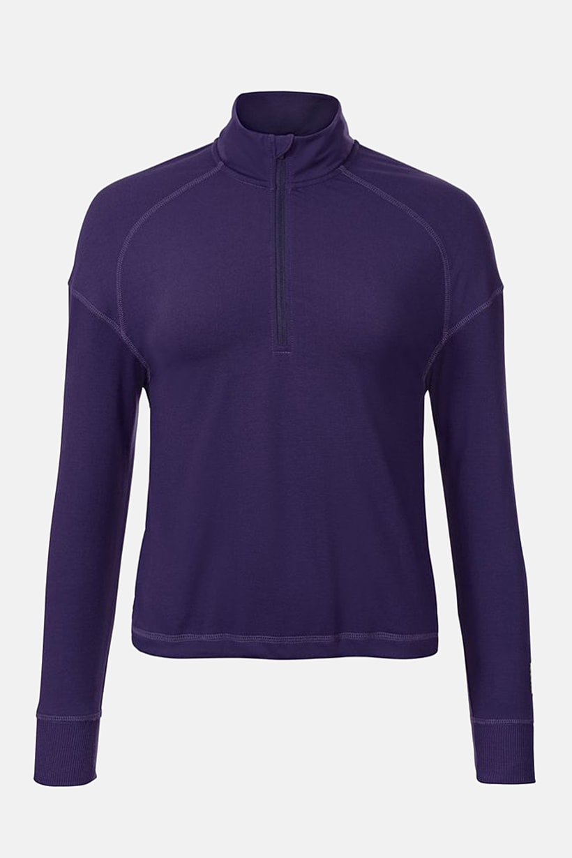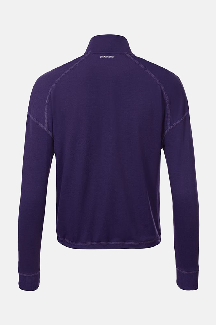Care : Machine washable, Ideal For : Women, Sleeve Length : Long Sleeve, Types of Neckline & Collar : High neckline, Types of Sleeve : Longsleeve, Fabrics : 70% Polyester, 23% Viscose, 7% Elastane, Types of Closures : Zipper closure, Color Family : Purple, Type of Sport : Outdoors, Types of Hem : Straight hem, Pattern & Print : Plain/Solid, Sportswear Type : Tops,