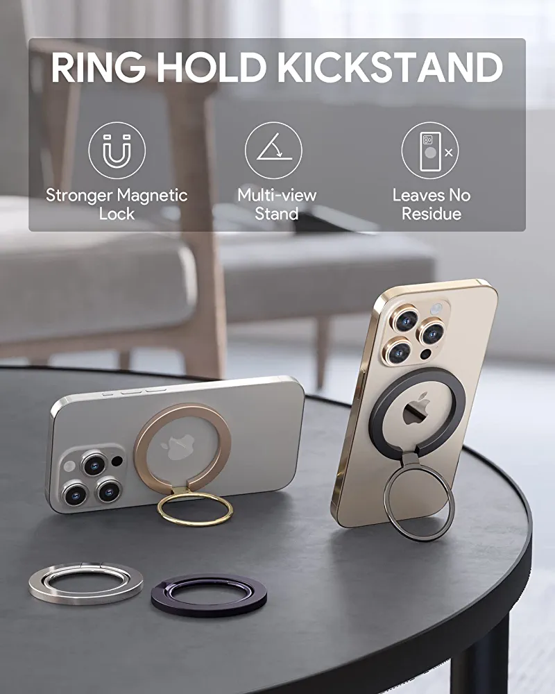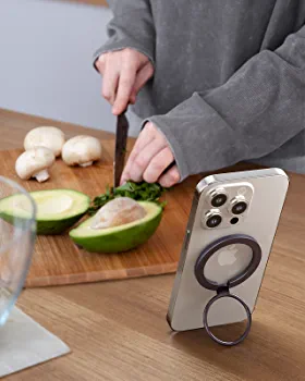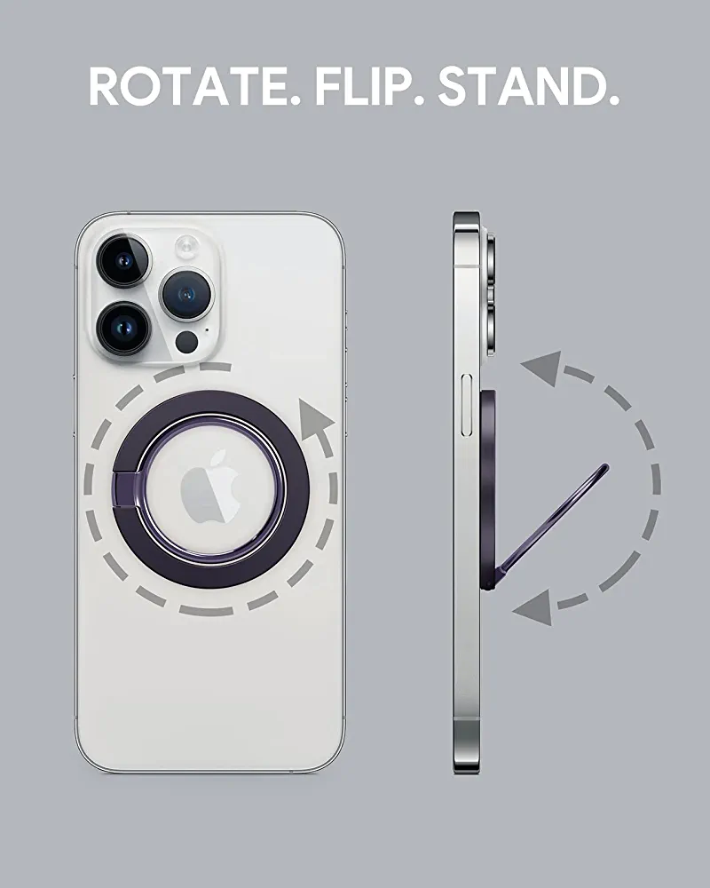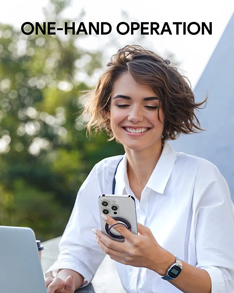 The product serves as both a grip and a stand, making it easy to use with one hand or as a desktop stand for hands-free scrolling, watching, or chatting.