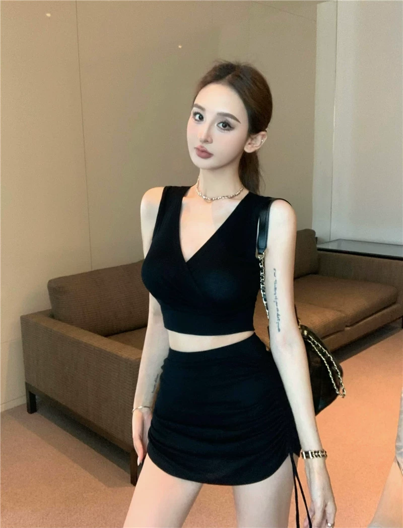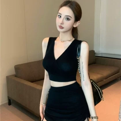 Purple mature style women’s summer pleated two-piece vest