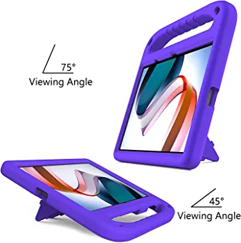 The case also features a no-slip handle that is perfect for kids’ little hands, and a cartoon at the back that doubles as a foldable kickstand. The kickstand can be adjusted to provide a comfortable horizontal or vertical viewing angle, and it won’t take up much space. Additionally, the case comes with a removable shoulder strap that can be attached to any two corner holes, making it easy to display your tablet behind a car headrest or between two seats.