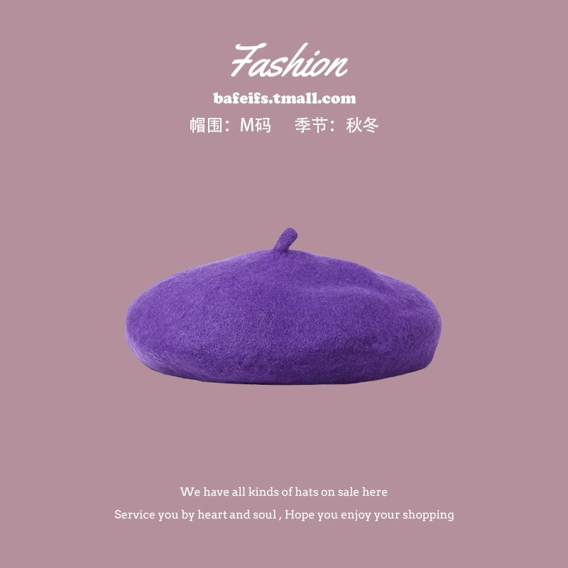 | nameOriginal | [Purple] Purple hat women's versatile spring and autumn taro purple duck tongue baseball cap beret knitted woolen hat |