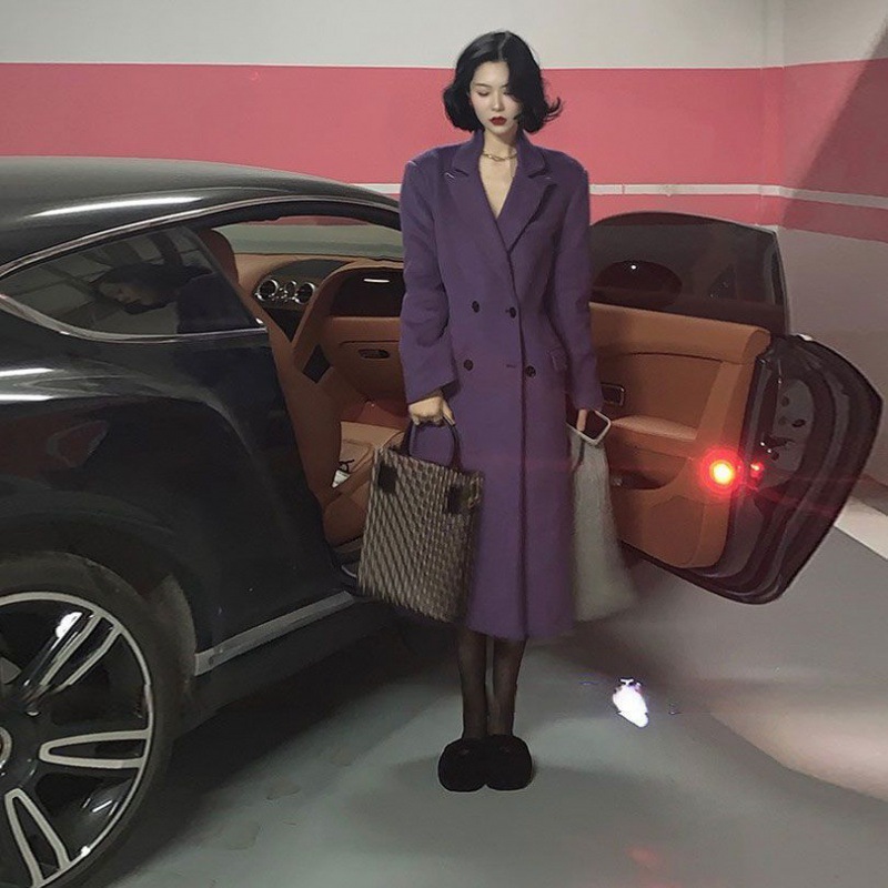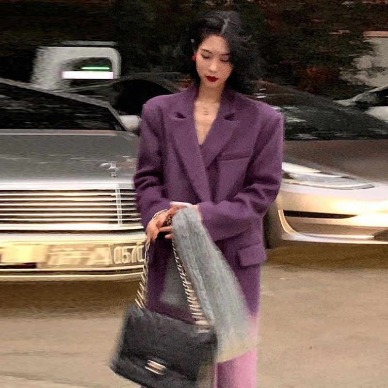 | nameOriginal | Purple retro suit woolen coat for women winter New style elegant texture thickened mid-length woolen coat |