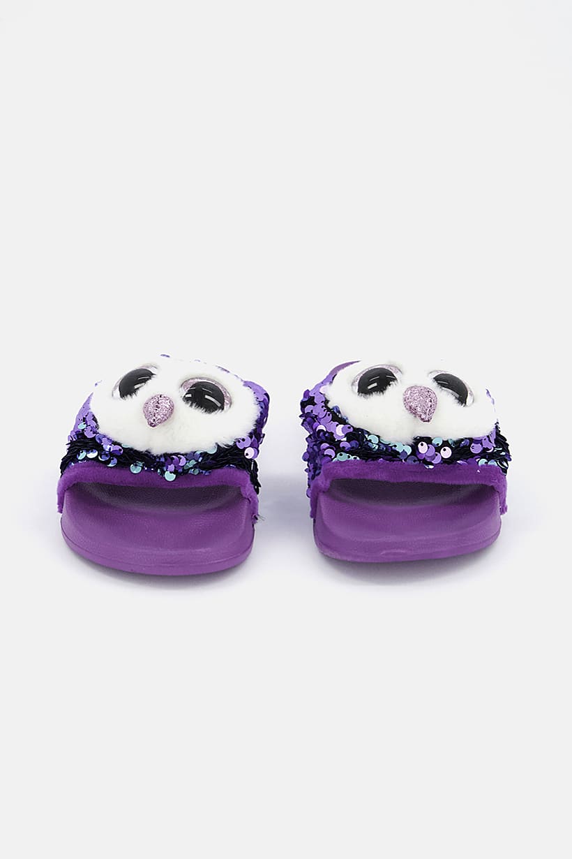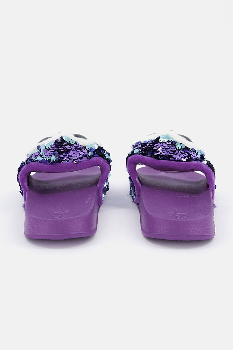 Types of Character : No Character, Ideal For : Girls, Embellished : Sequins, Occasion : Casual, Shoe Closure : Slip on, Toe Style : Open toe, Sole Material : Rubber sole, Shoe Material : Textile, Color Family : Purple,