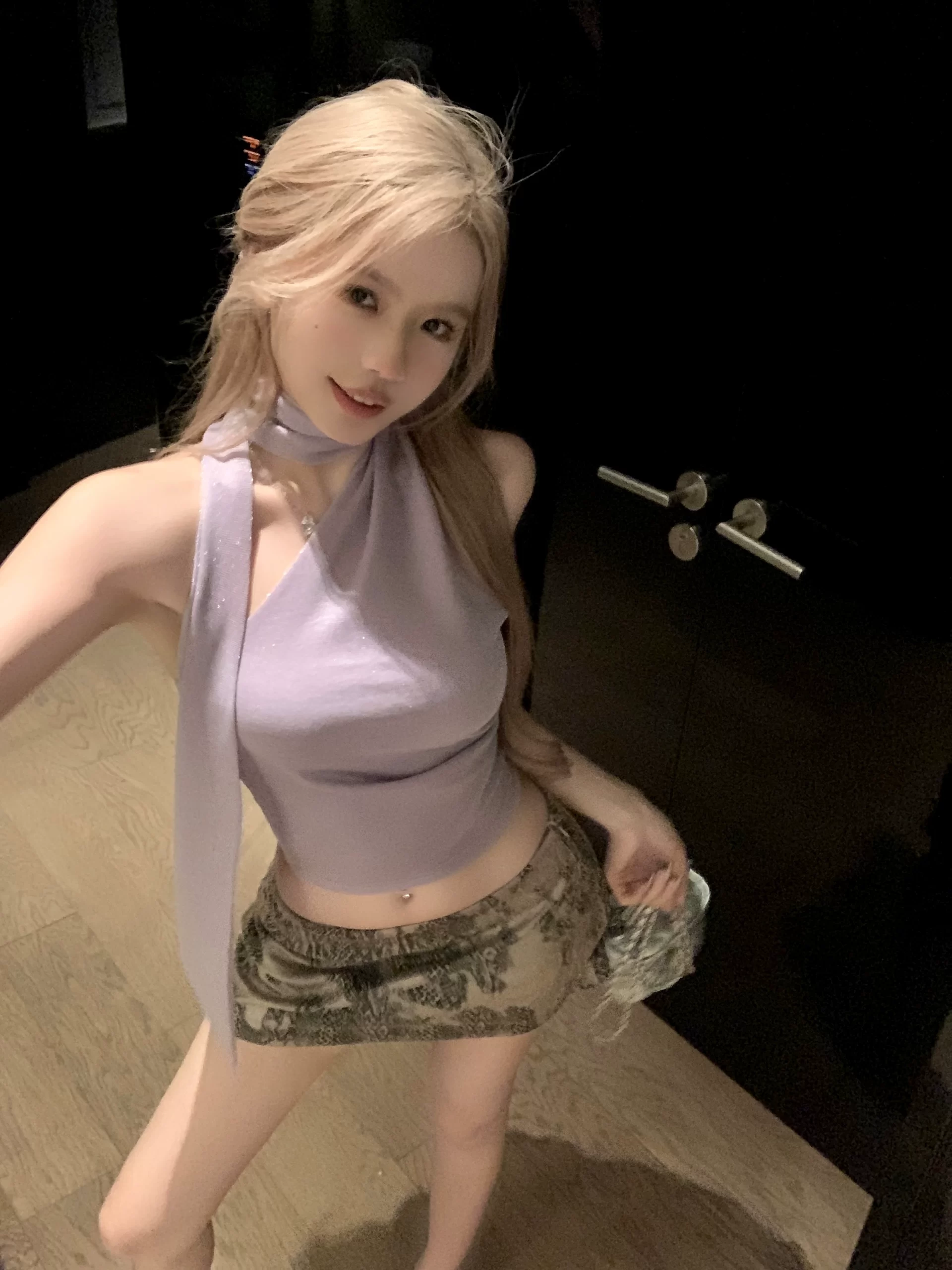Purple oblique shoulder summer slim design sense hanging neck strap