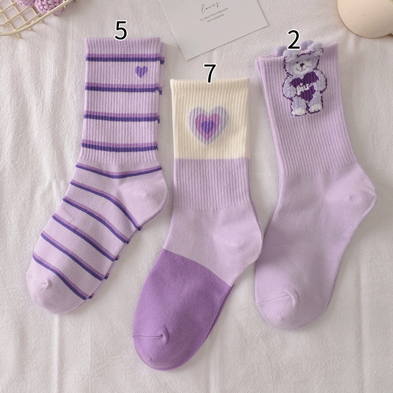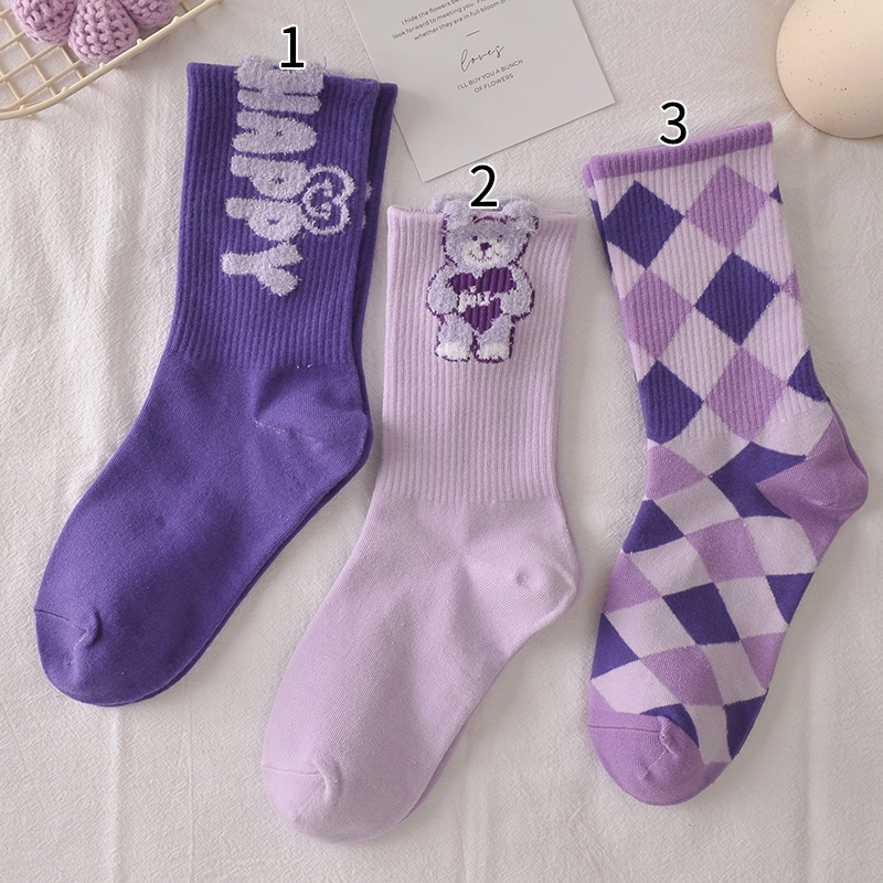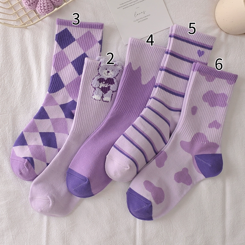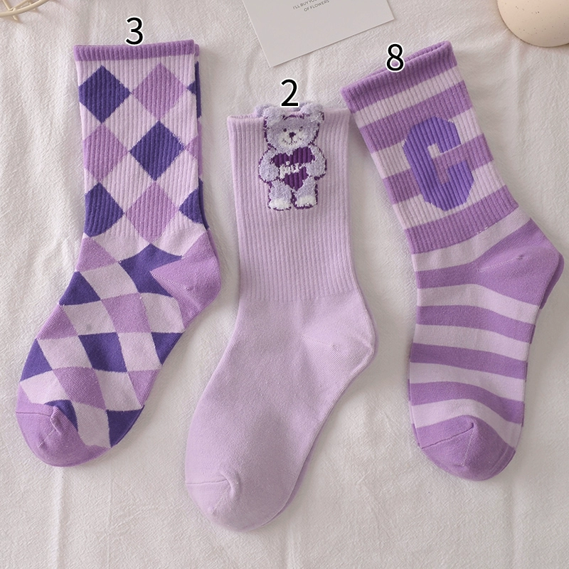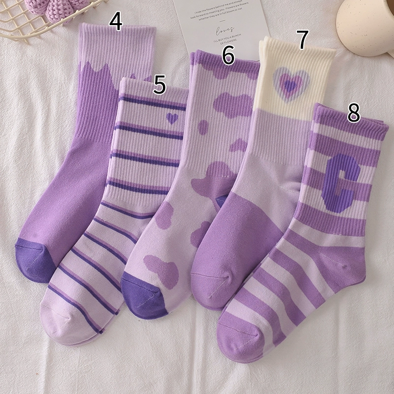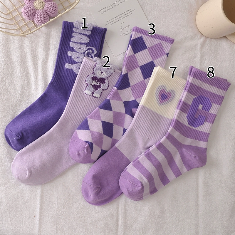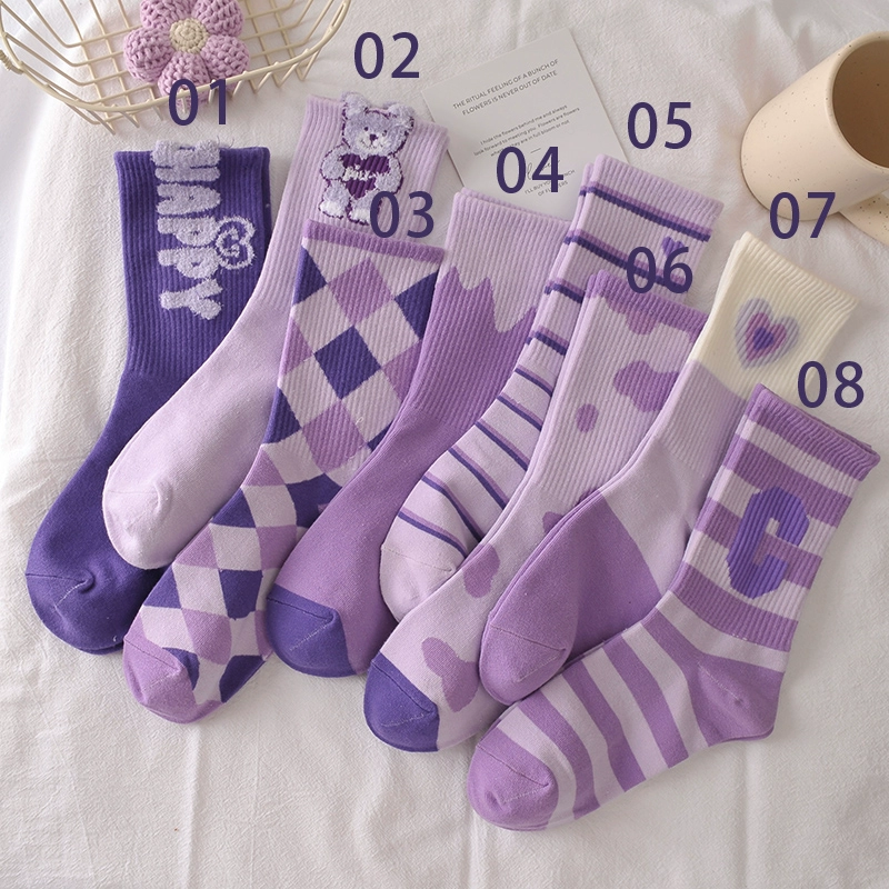 | nameOriginal | Purple socks women's spring, autumn and winter mid-calf cotton socks ins trendy matching shark pants student sports socks for outer wear |
