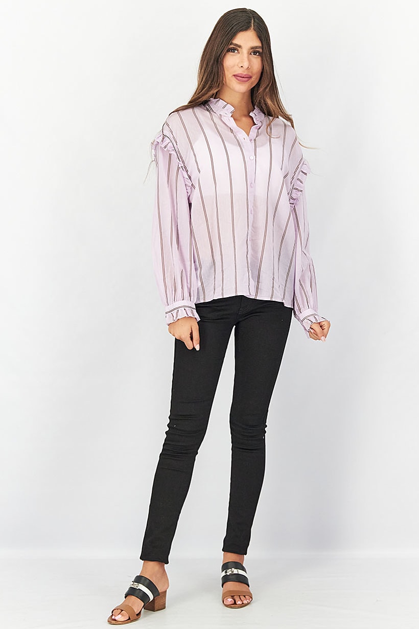 | sub_Categories | Women Clothing, Tops & Tees, women ruffle neck long sleeves stripe print blouse purple |