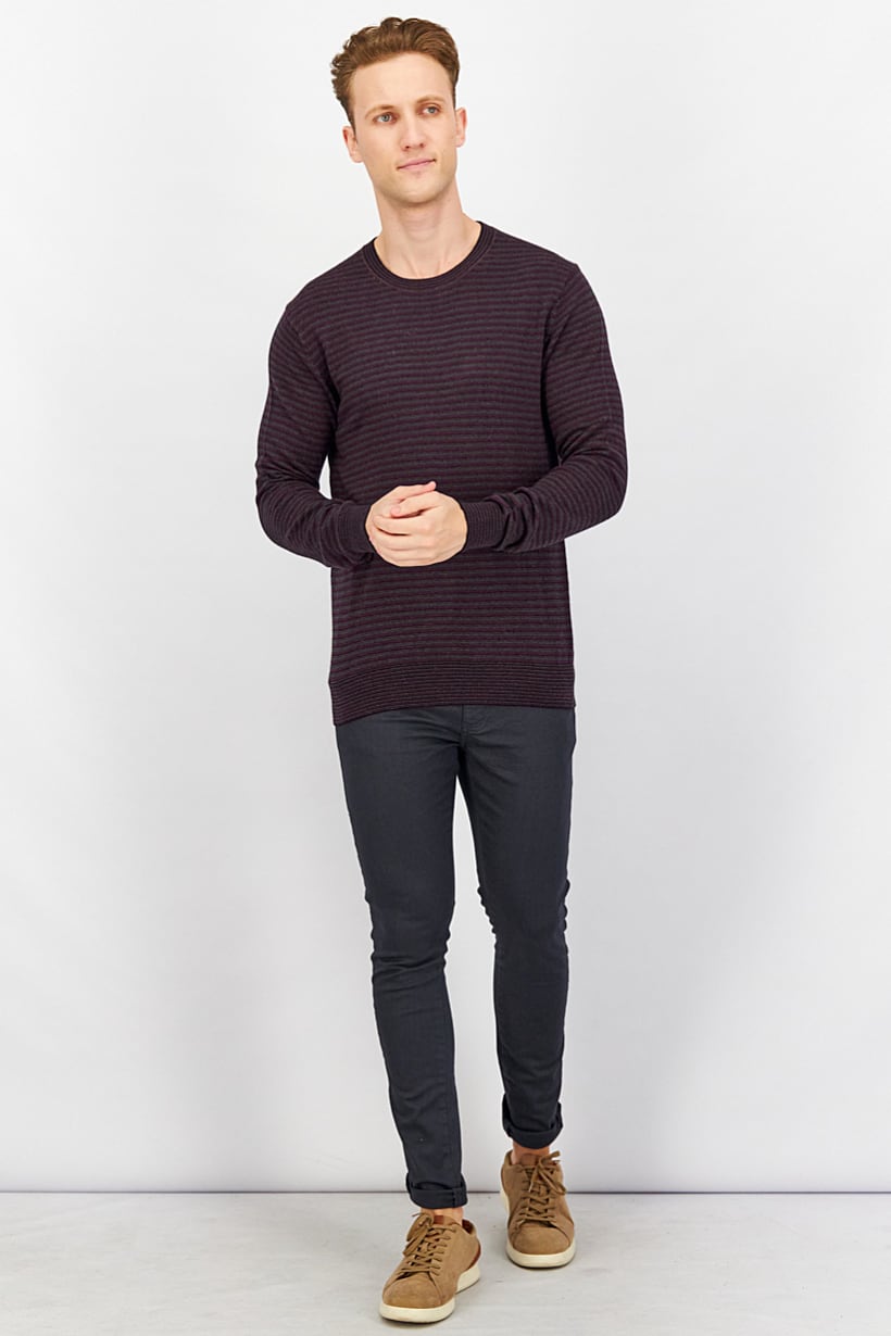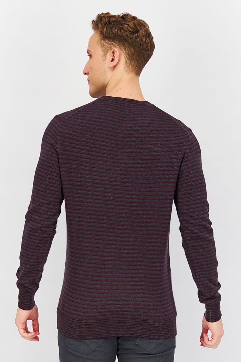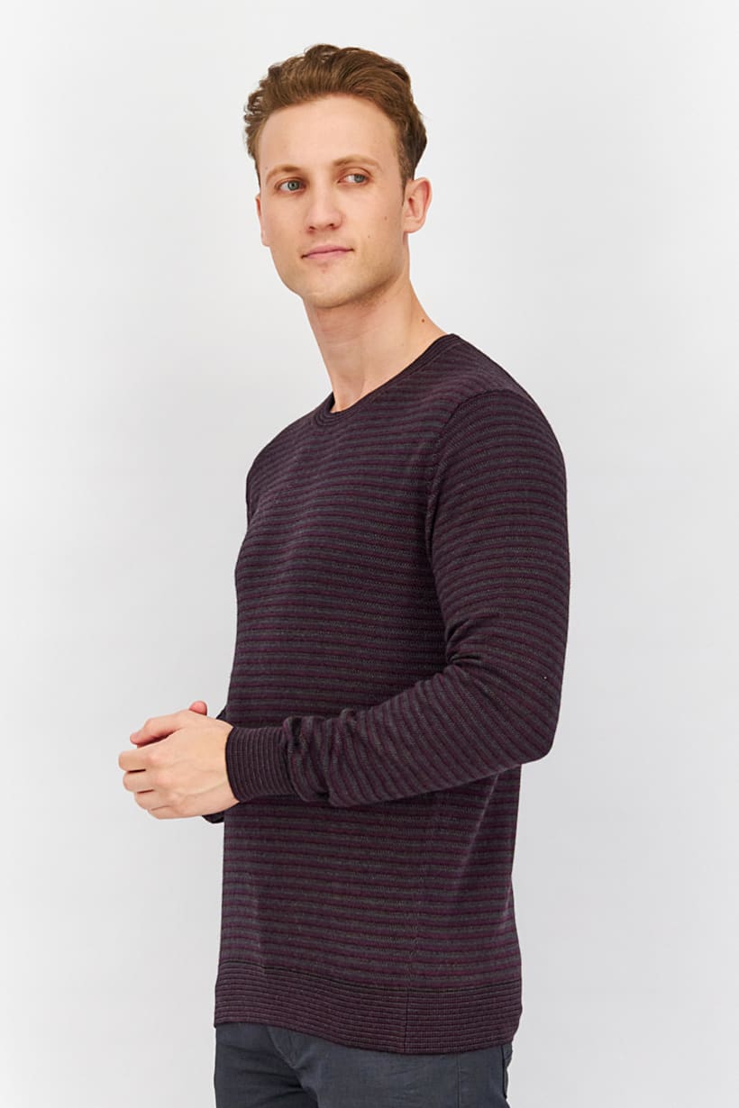 Men Crew Neck Stripe Knit Sweatshirt, Purple
