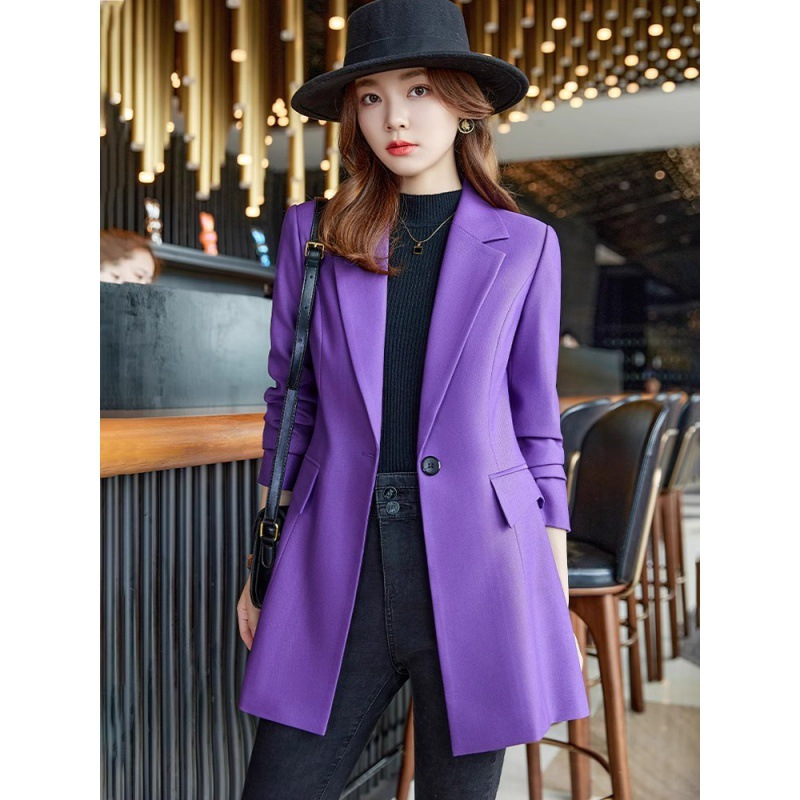 | nameOriginal | Purple suit trench coat for women autumn and winter 2024 new fashionable high-end slim-fit mid-length small suit top |