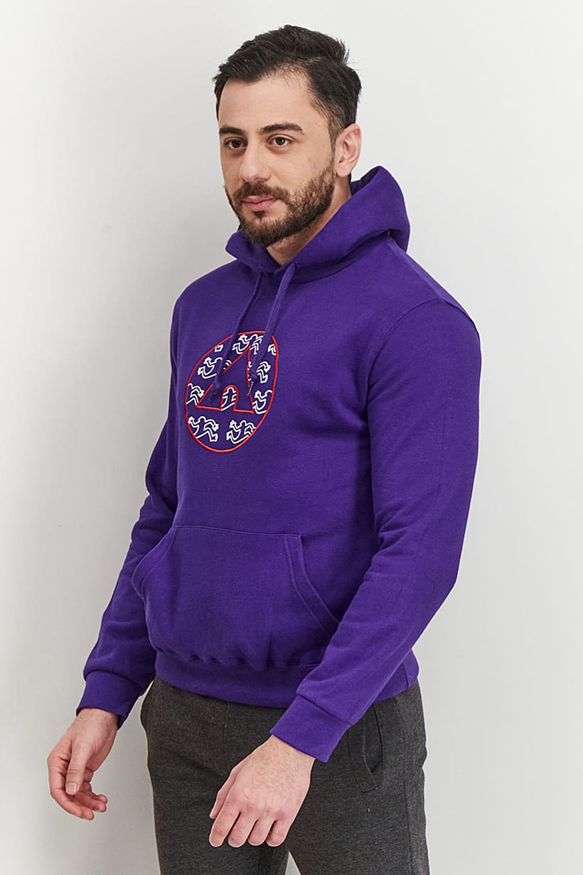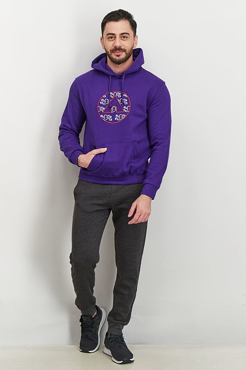 Men Hood With Drawstring Embroidered Logo Sweatshirt, Purple