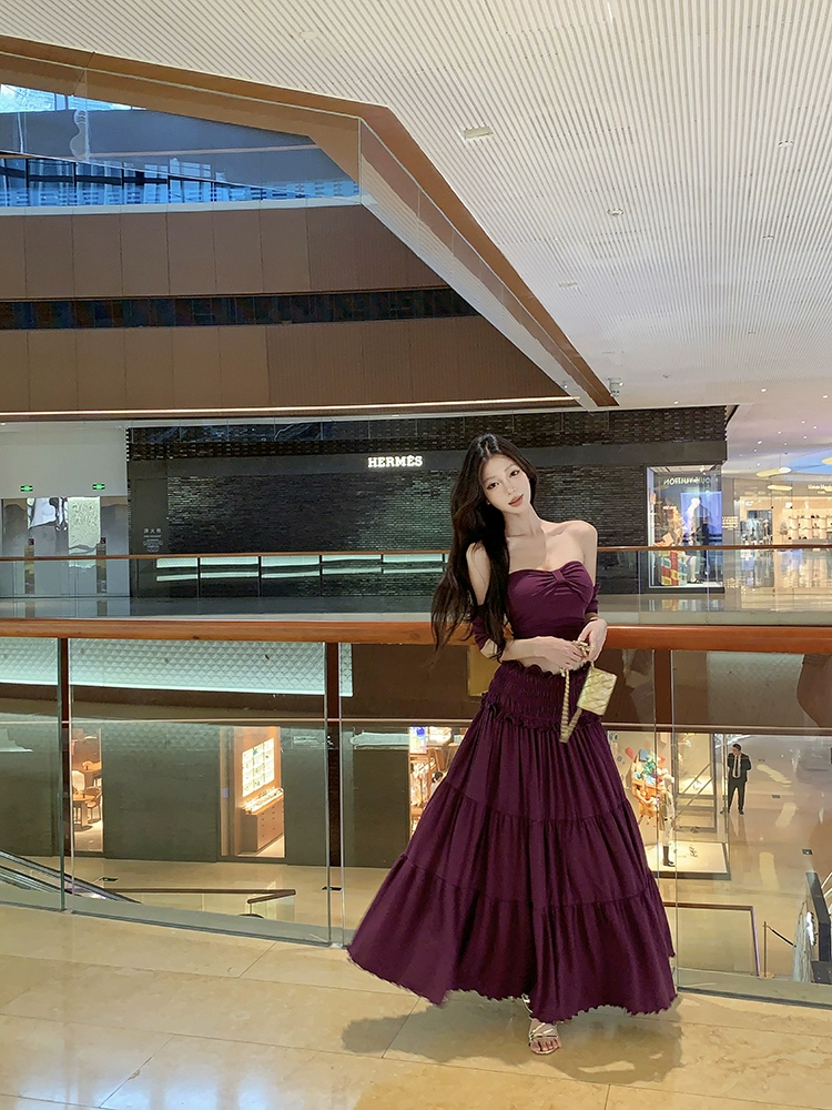 | nameOriginal | Purple T-shirt women's summer long a-line two-piece short-sleeved set |