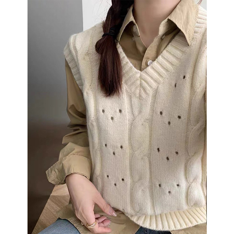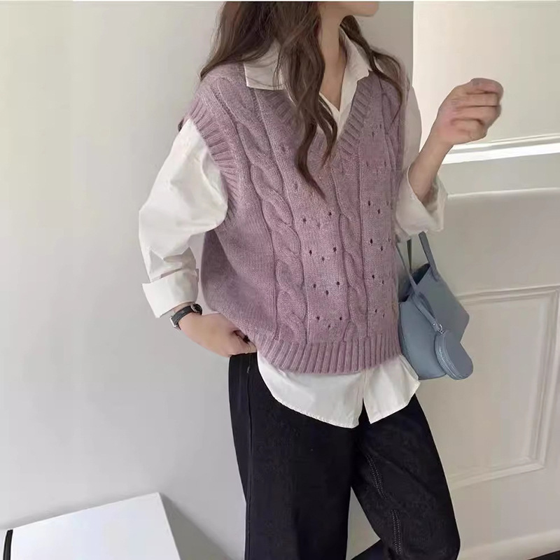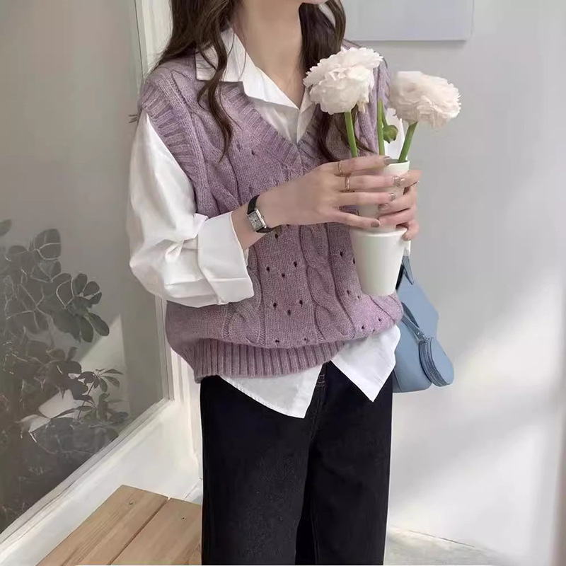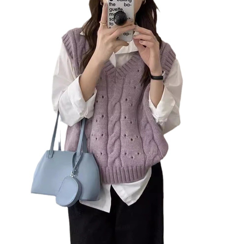 Purple V-Neck Stacked Waistcoat Women's Spring and Autumn 2024 New Amazon Lazy Sweater Vest Sleeveless Knitted Vest