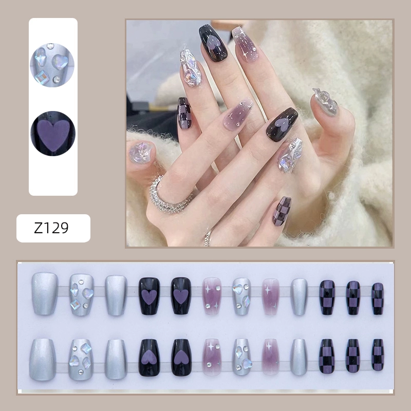| nameOriginal | Purple Wearable Nails High-end Niche Light Luxury Gradient Nail Art Patch 2024 New Whitening Internet Celebrity Short Style Summer |