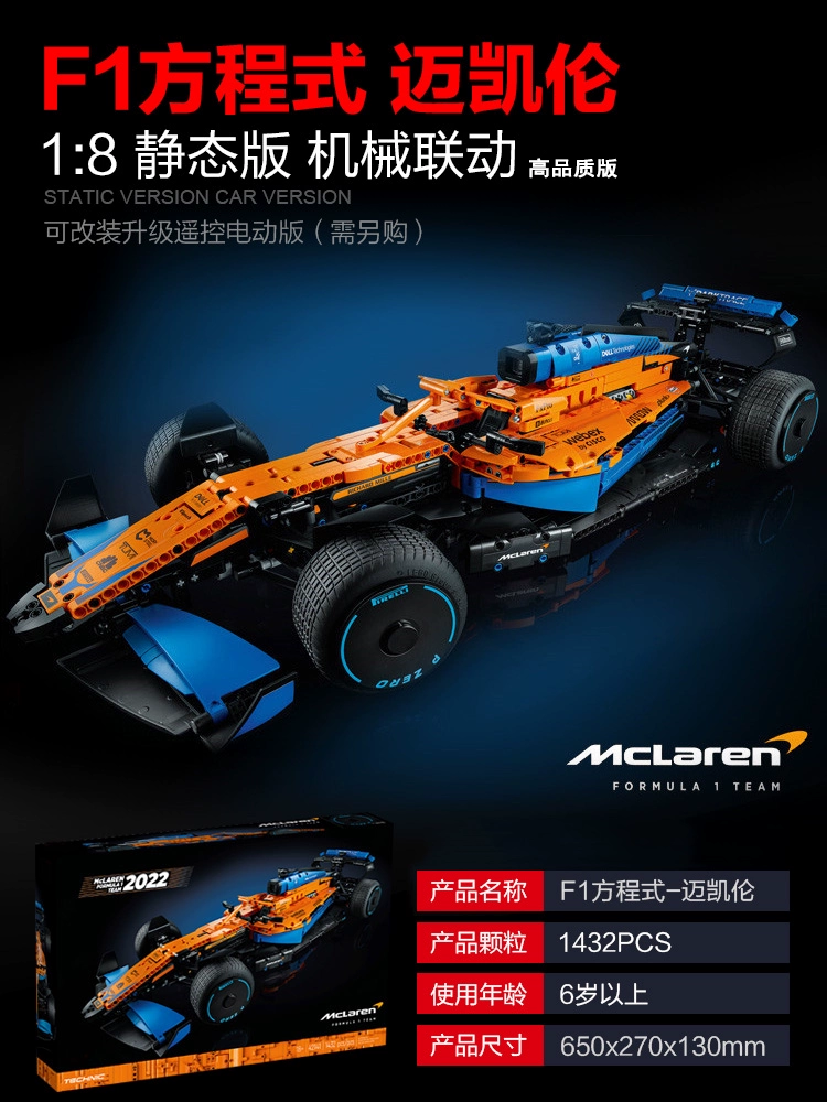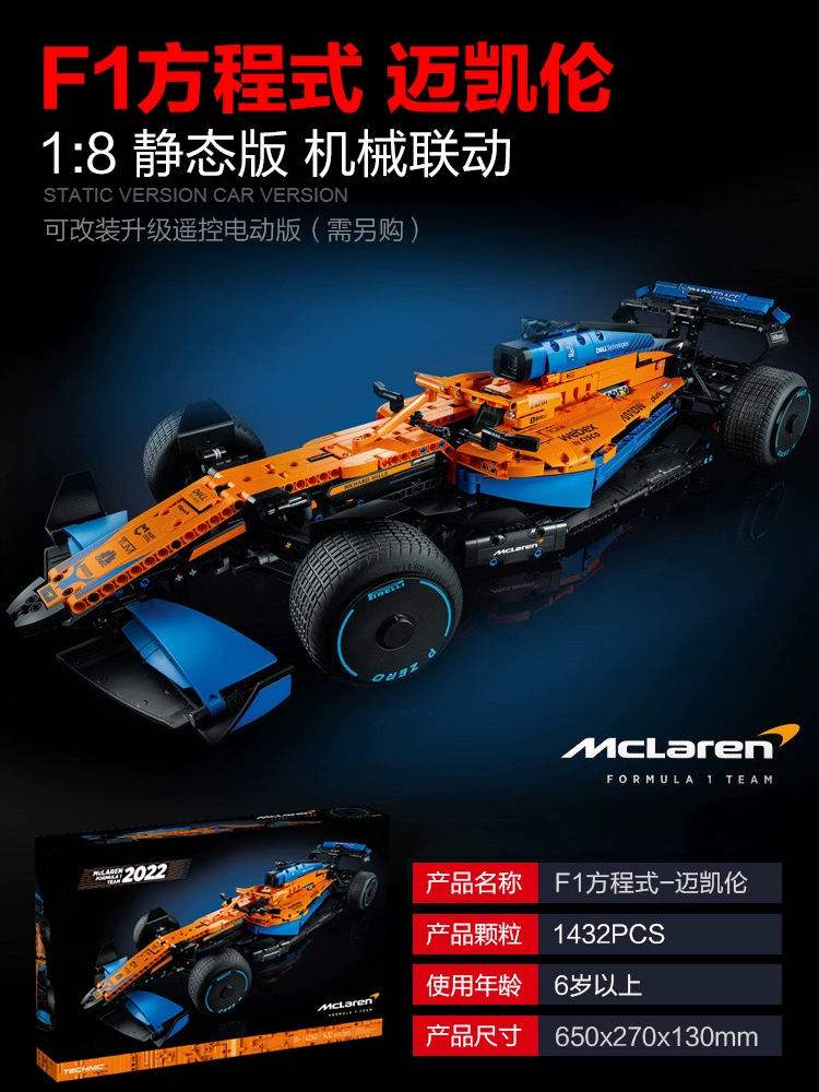 | nameOriginal | Puzzle building 42141 technology machinery F1 McLaren formula racing boy assembly toy Chinese building blocks |