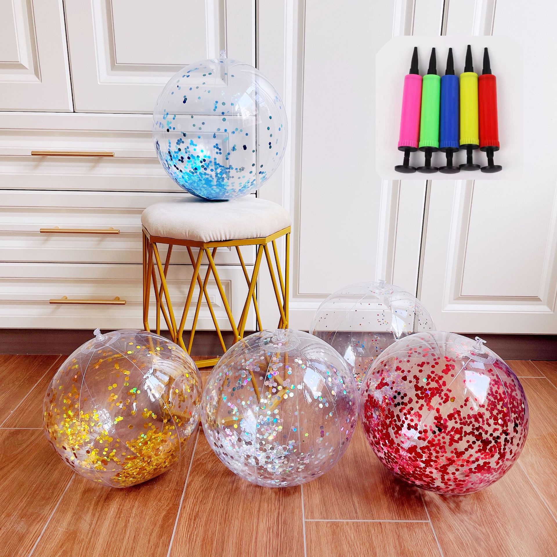 pvc inflatable beach ball transparent sequin ball children adult toy ball transparent beach ball sequin stuffing ball