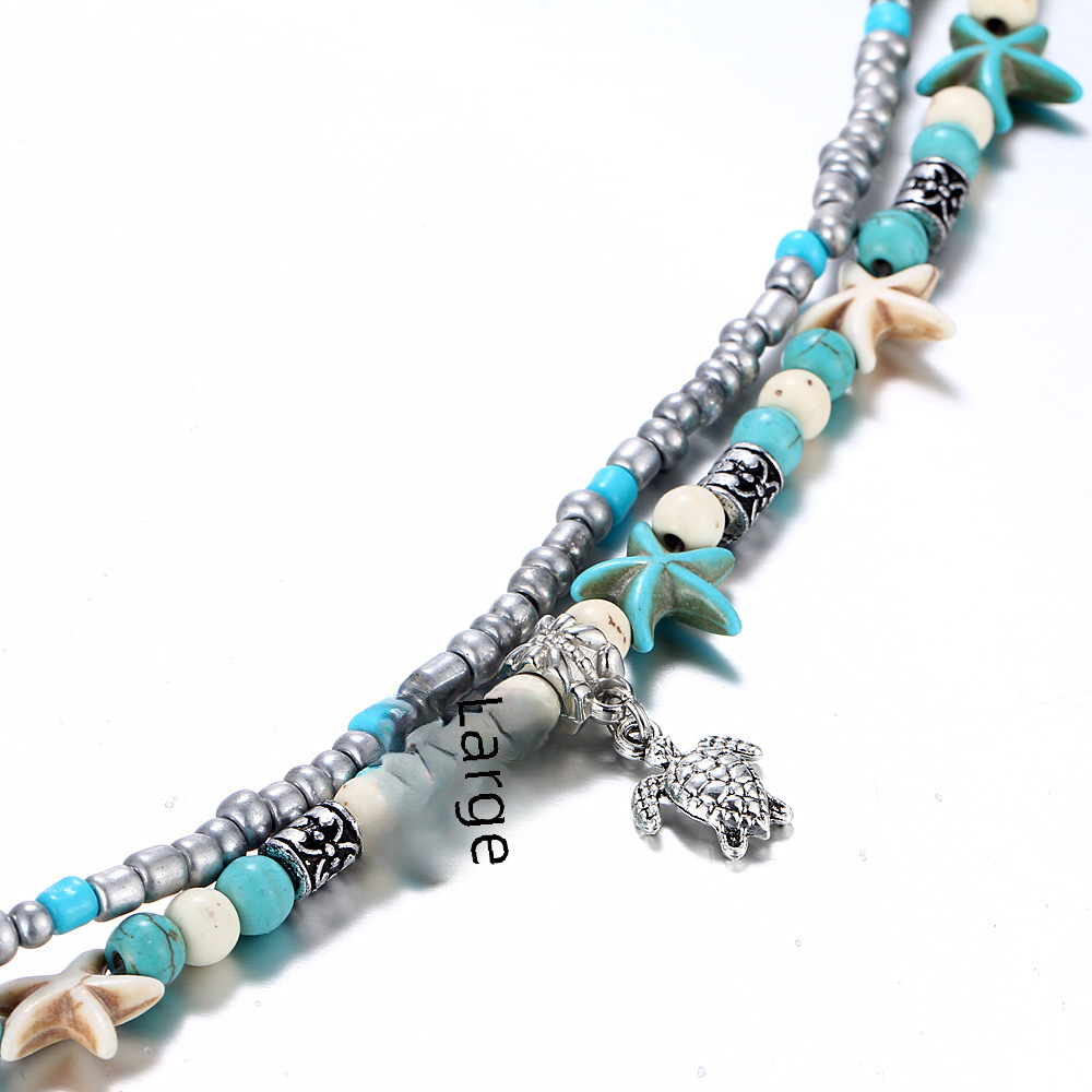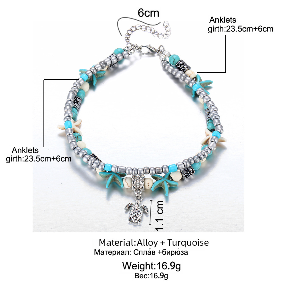 PZCC1879 Han Zhishang Double-layer Anklet Conch Sea Star Rice Bead Yoga Beach Turtle Pendant Anklet Bracelet