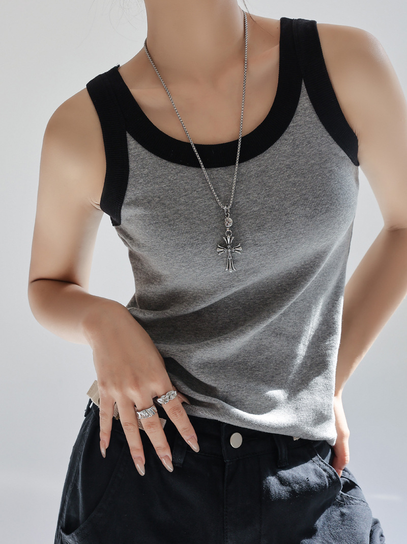 | nameOriginal | Q Knitted Threaded Base Strap Small Vest Women's Summer Inner Contrast Color Covering Milk Black Outer Sleeveless Top |