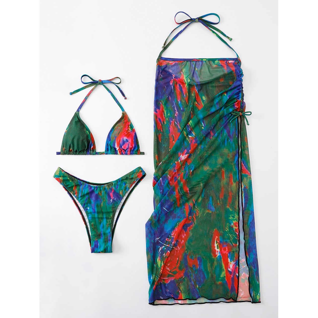 Q22S8120 European and American women's Amazon summer new bikini chiffon swimsuit sexy three-piece