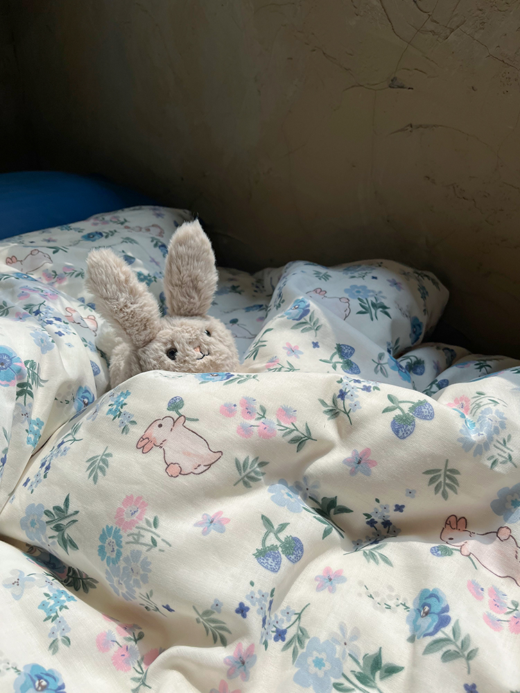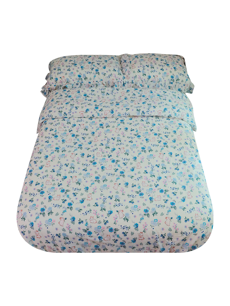 | nameOriginal | Q5ZR blue floral rabbit, Cute floral rabbit dormitory 1.2 m double-layer yarn spring bed sheet quilt cover fitted sheet |