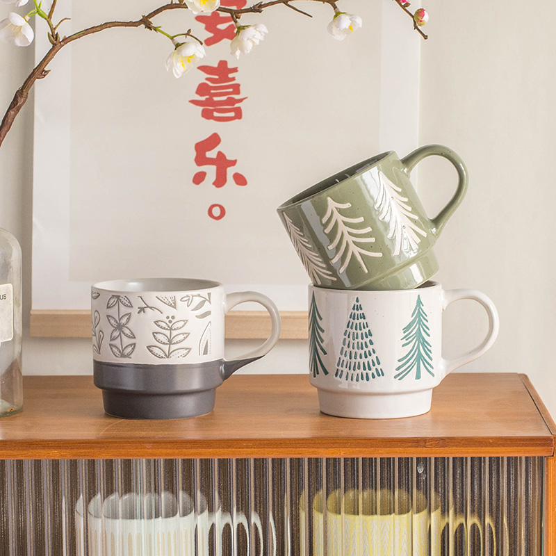 Q5ZR Korean style ins style ceramic mug household water cup simple ceramic splash ink pine pattern coffee cup