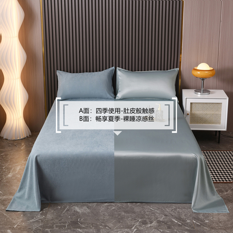 Q5ZR solid color bed sheet fitted sheet bedspread winter single Ice Silk student dormitory quilt single pillowcase quilt single three-piece set Plus