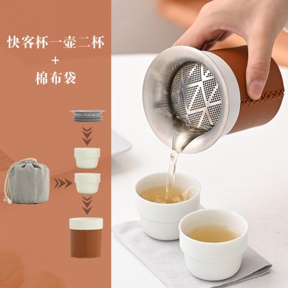 Q5ZR travel tea set portable kettle personal outdoor tea fast cup a pot of two cups camping teapot