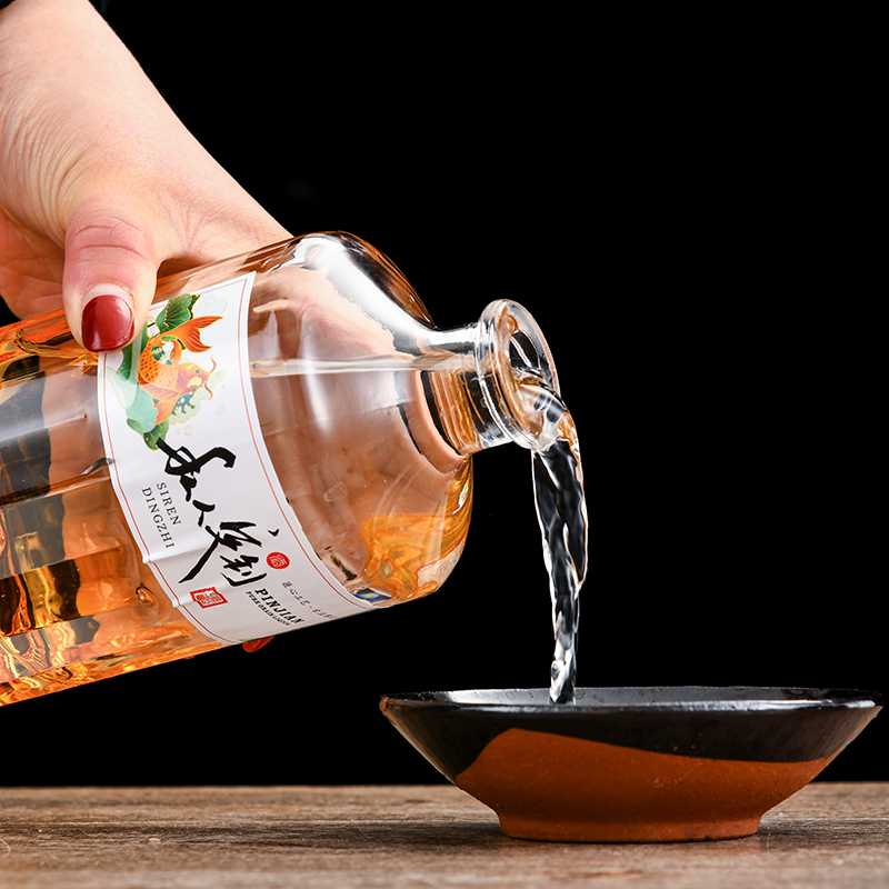 | nameOriginal | Q5ZR wine bottle Guanshan 500ml white wine bottle empty bottle thickened sealed household one Jin glass open mountain White |