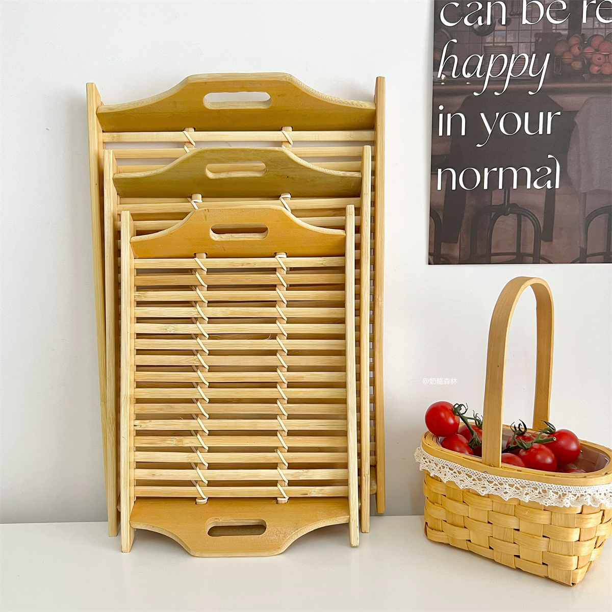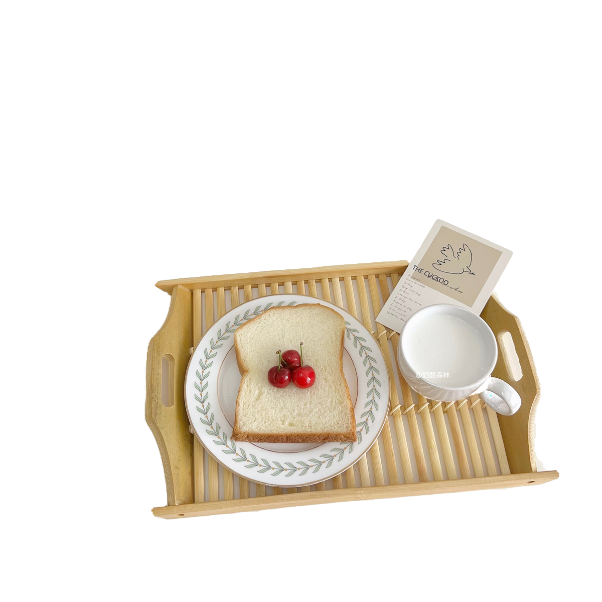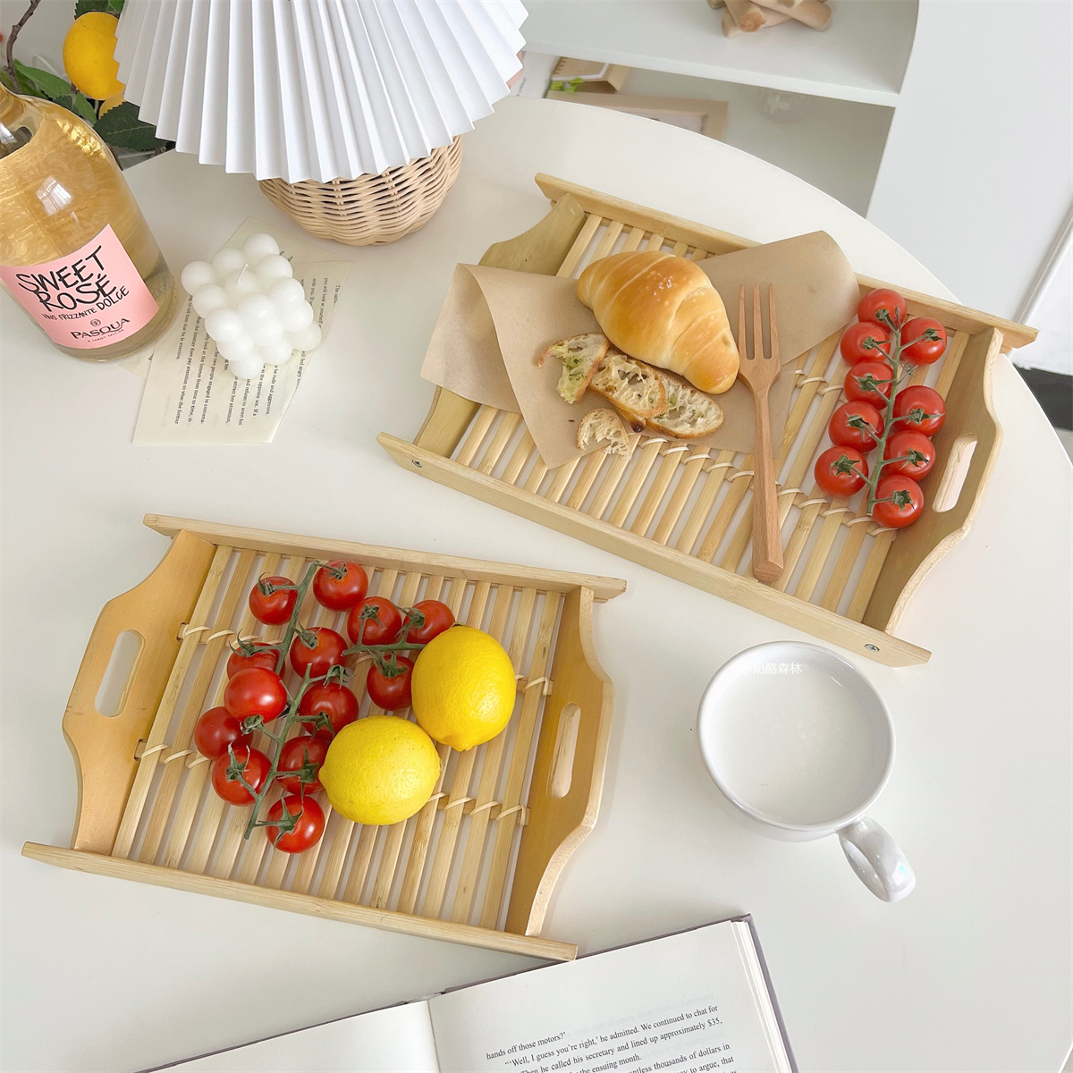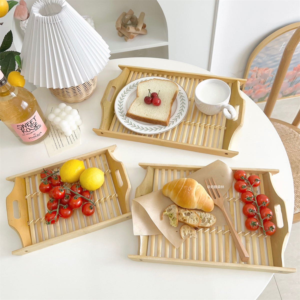 Q5ZRins Bamboo Long-row Tray Tea Tray Rectangular All-bamboo Dinner Plate Household Multi-use Bamboo Tray Perfume Decoration