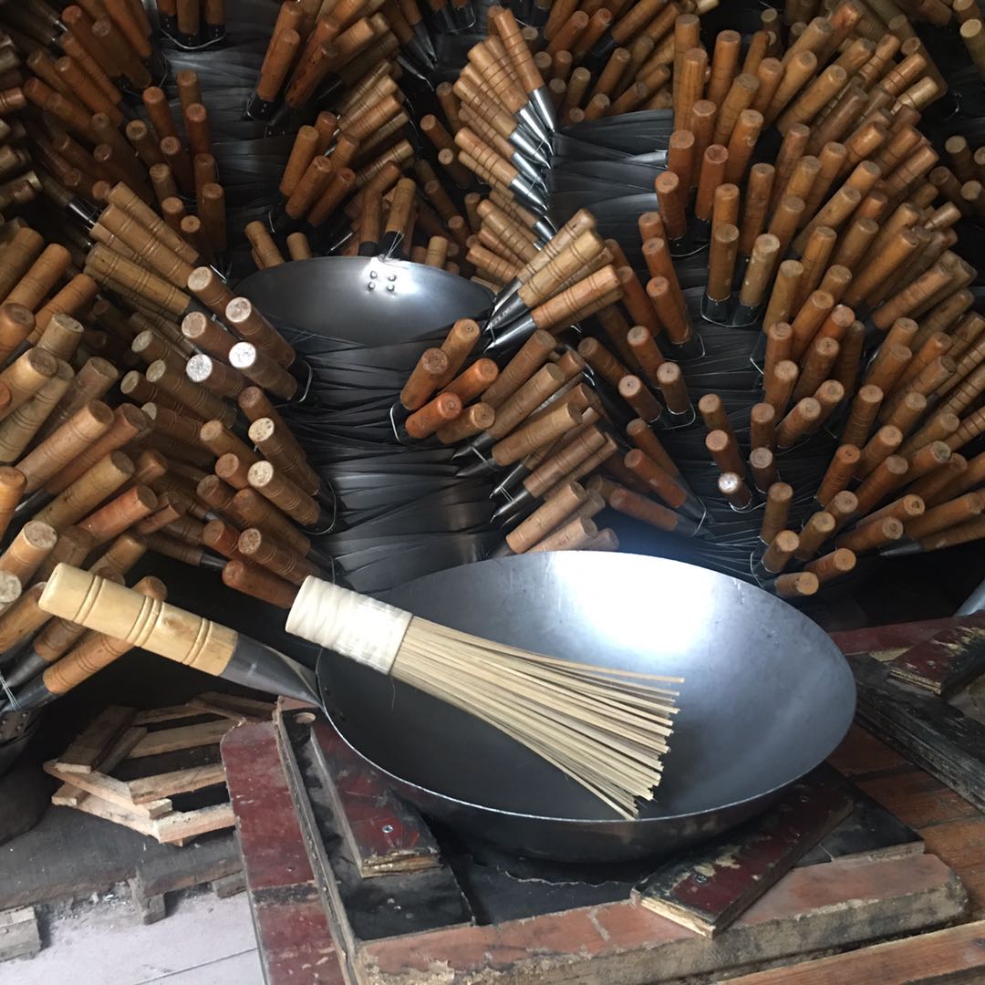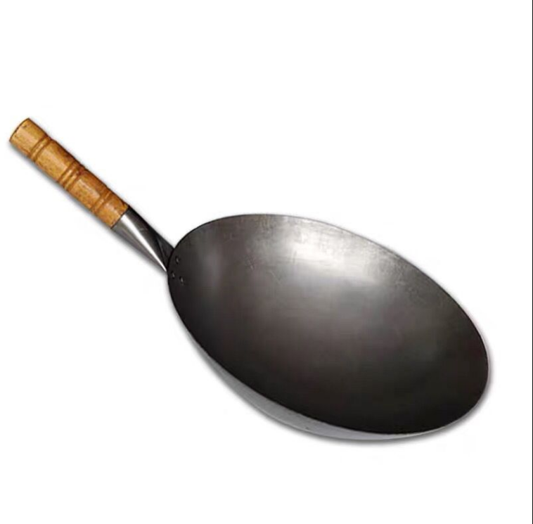Q683 Hotel Canteen Food Stall Wok Commercial Uncoated Iron Pan Stir-fry Traditional Single-handle Pot Gas Stove