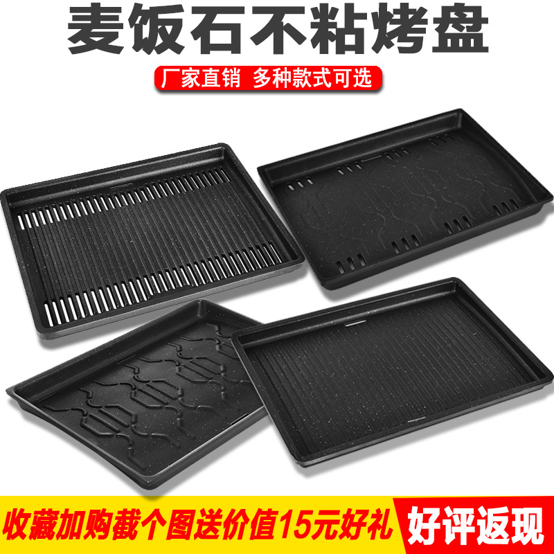 Q683 Korean barbecue plate charcoal fire rectangular flat teppanyaki smokeless barbecue plate non-stick maifan Stone commercial baking