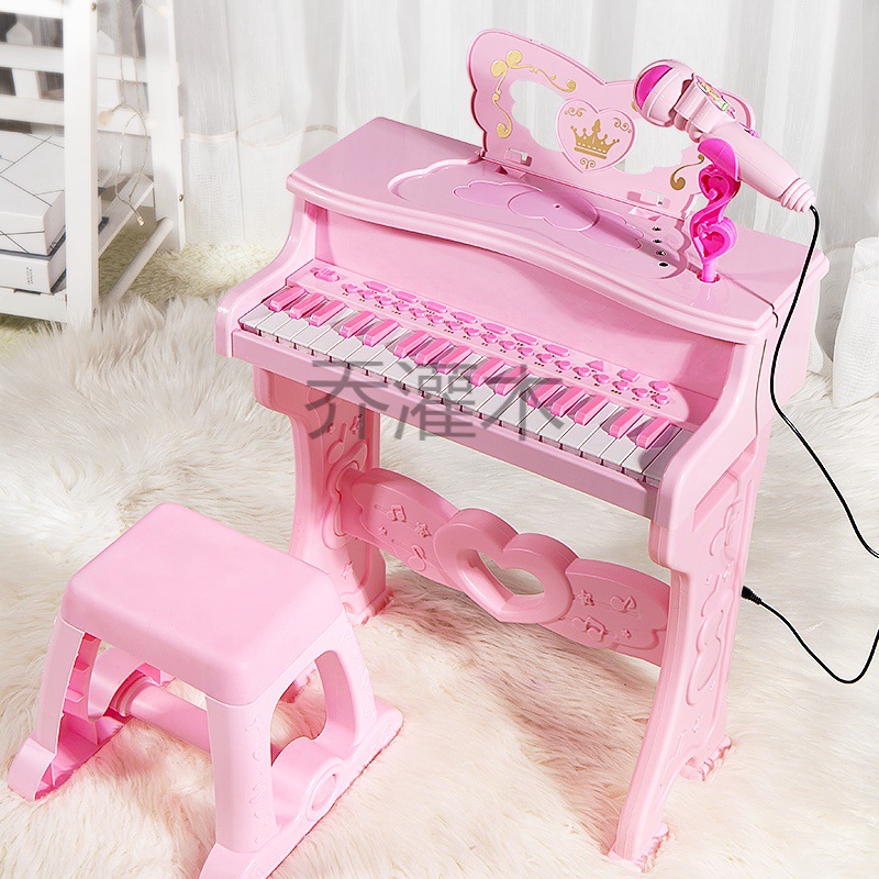 Qg Children's Piano Toy Beginner Multifunctional Electronic Piano with Microphone 3-6 Years Old Early Education Educational Toy for Women